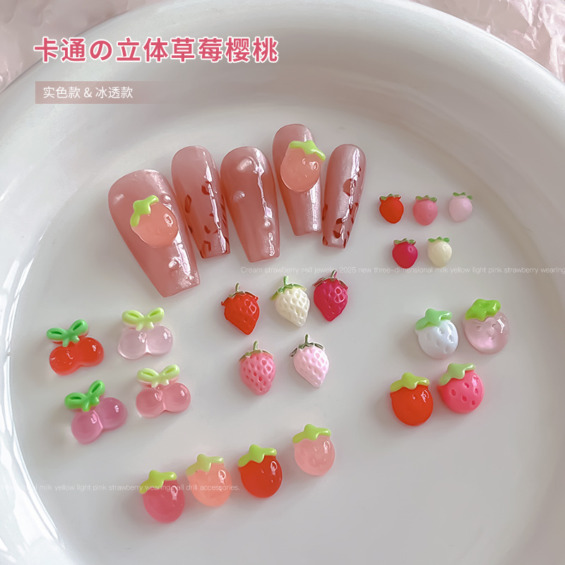 딸기 체리 네일 쥬얼리를 통해 얼음 2025 새로운 만화 3 차원 과일 미니 수지 네일 액세서리 도매스토어 가기