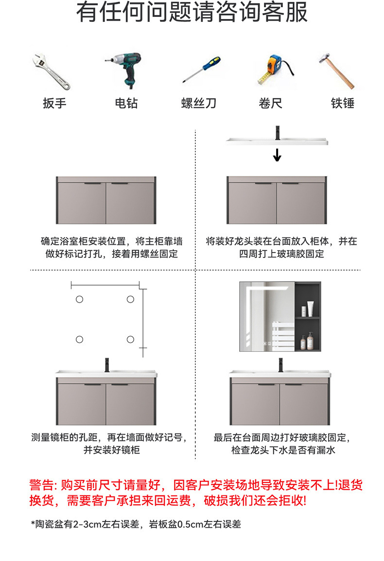 두꺼운 벌집 공간 알루미늄 욕실 캐비닛 조합 욕실 세면대 통합 세라믹 세면대 세면대 국경 간스토어 가기