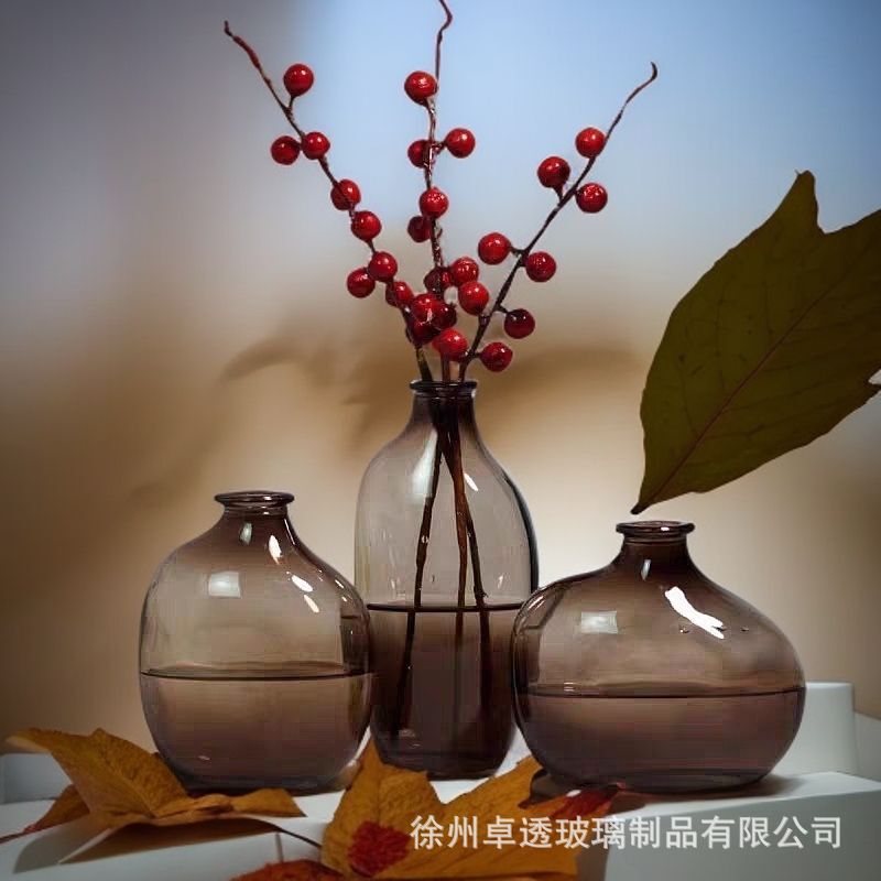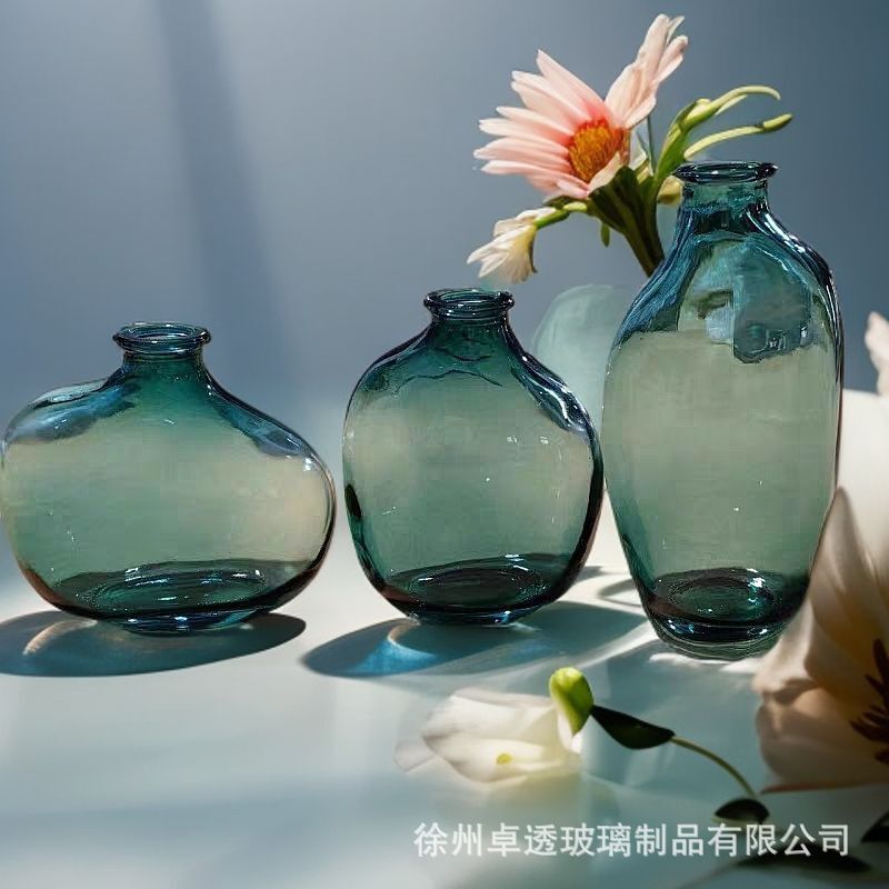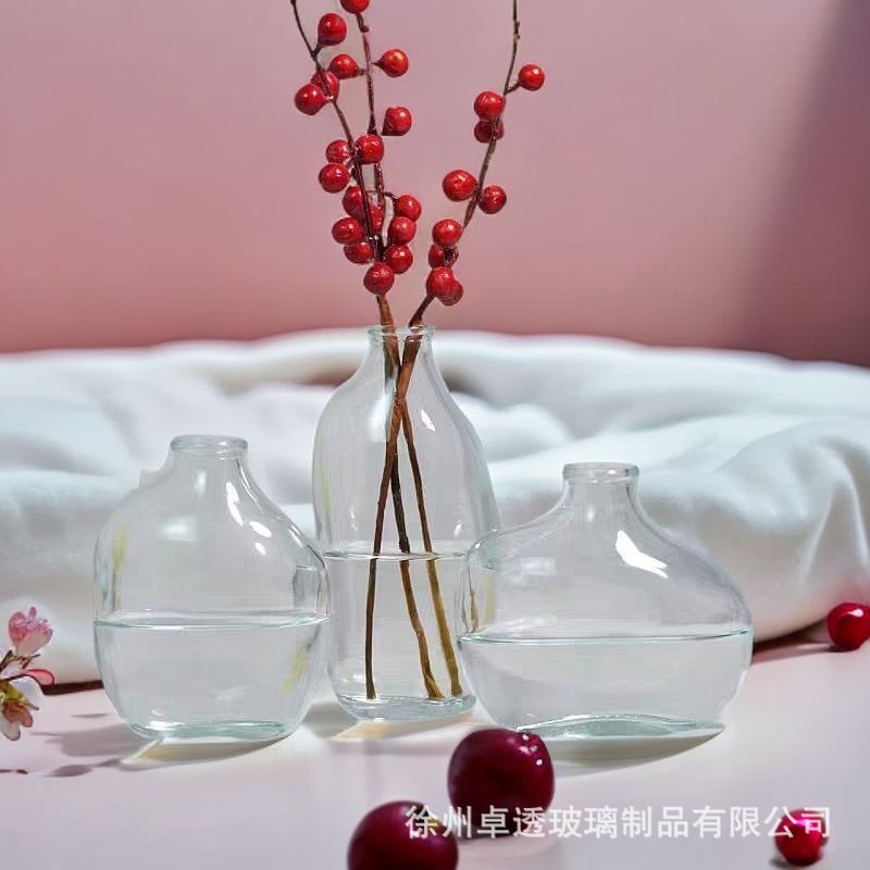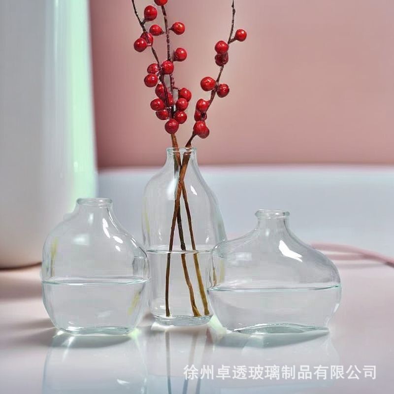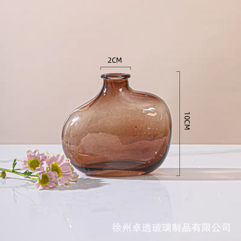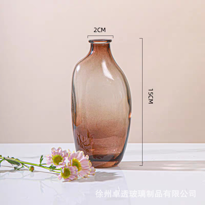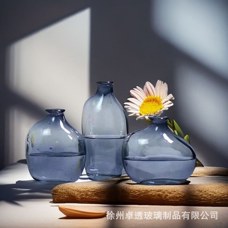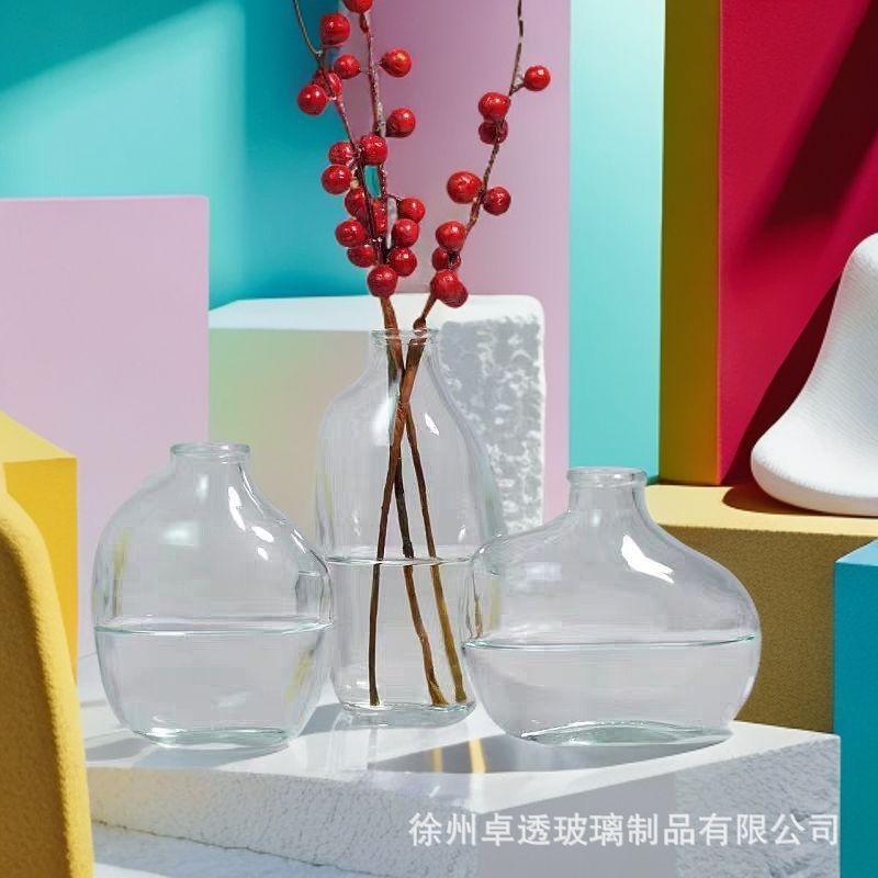 북유럽 신선한 컬러 유리 꽃병 크리 에이 티브 데스크탑 작은 꽃병 라이트 럭셔리 간단한 아로마 테라피 병 제조 업체 스팟 도매