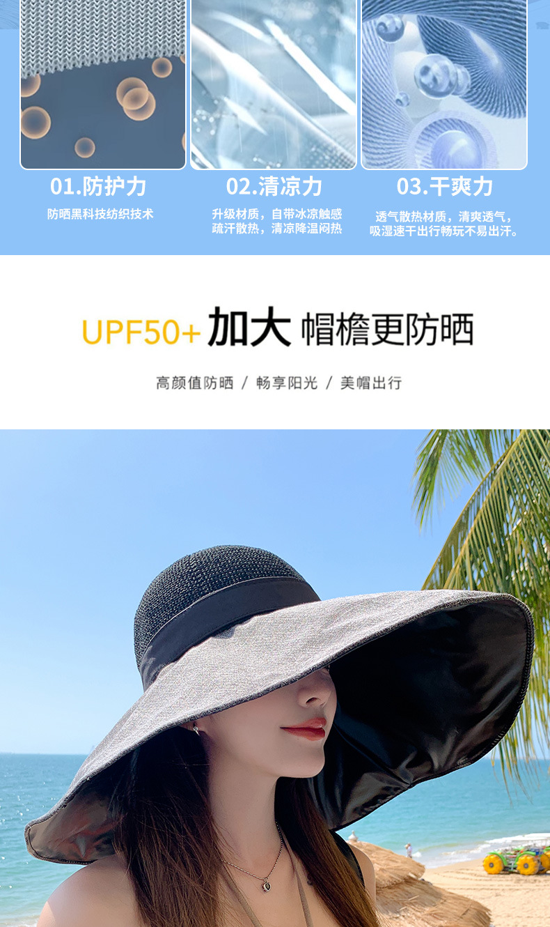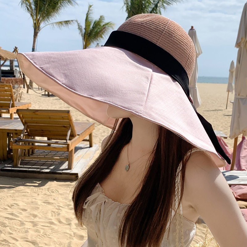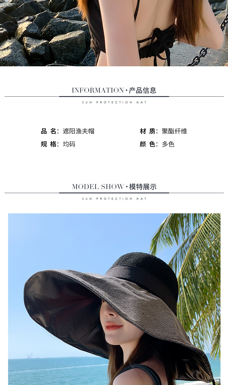 여성을위한 초대형 챙 비닐 자외선 방지 돔 어부 모자 한국 스타일 패션 해변 휴가 태양 보호 태양 모자