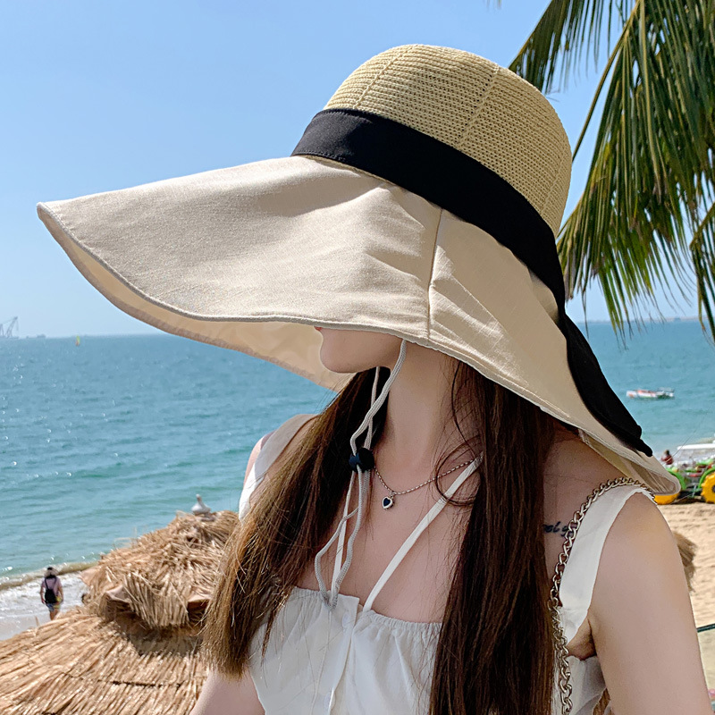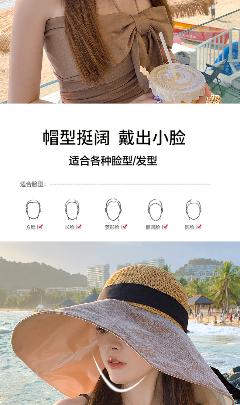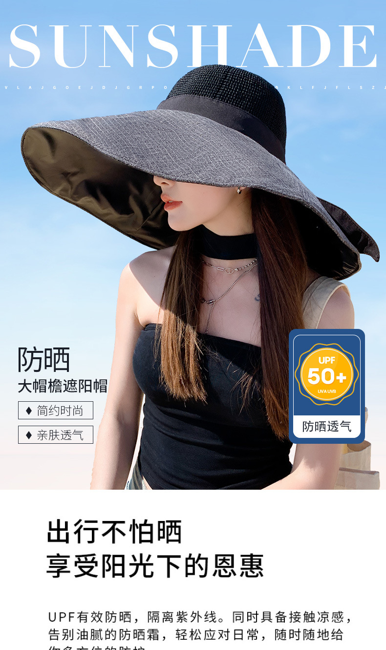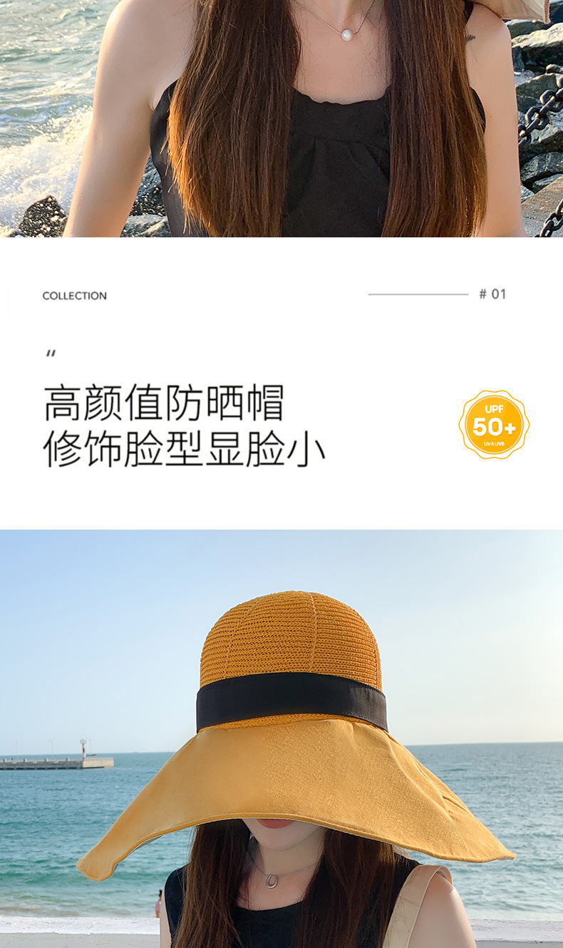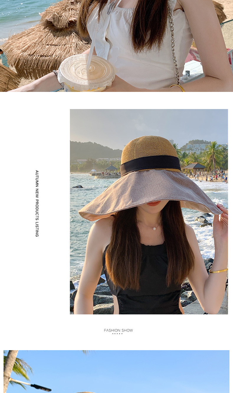 여성을위한 초대형 챙 비닐 자외선 방지 돔 어부 모자 한국 스타일 패션 해변 휴가 태양 보호 태양 모자스토어 가기