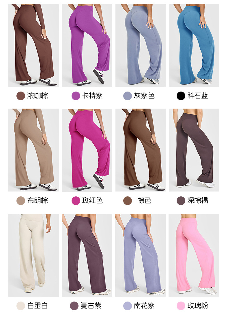 느슨한 스트레이트 다리 바지 요가 바지 여성용 슬리밍 높은 허리 엉덩이 리프팅 호흡 불가 라인 스포츠 피트니스 바지 넓은 다리 바지
