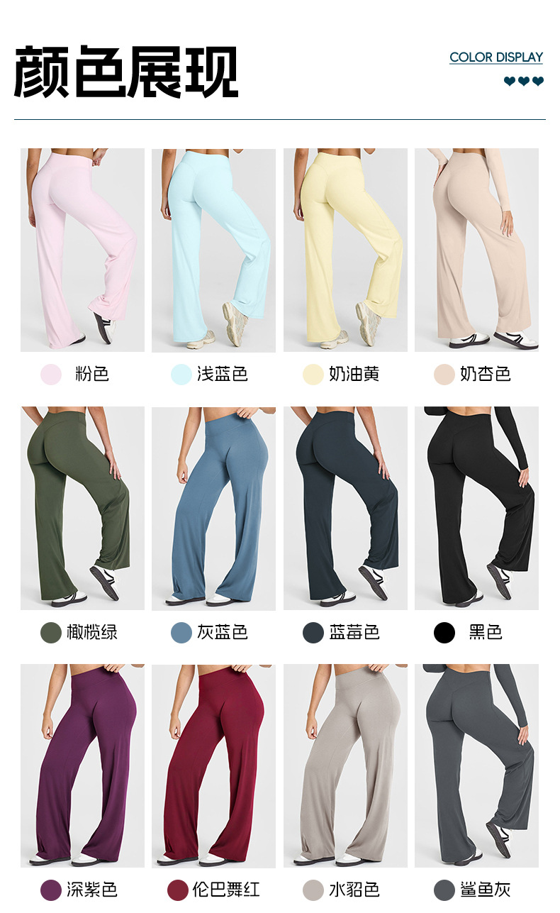 느슨한 스트레이트 다리 바지 요가 바지 여성용 슬리밍 높은 허리 엉덩이 리프팅 호흡 불가 라인 스포츠 피트니스 바지 넓은 다리 바지스토어 가기