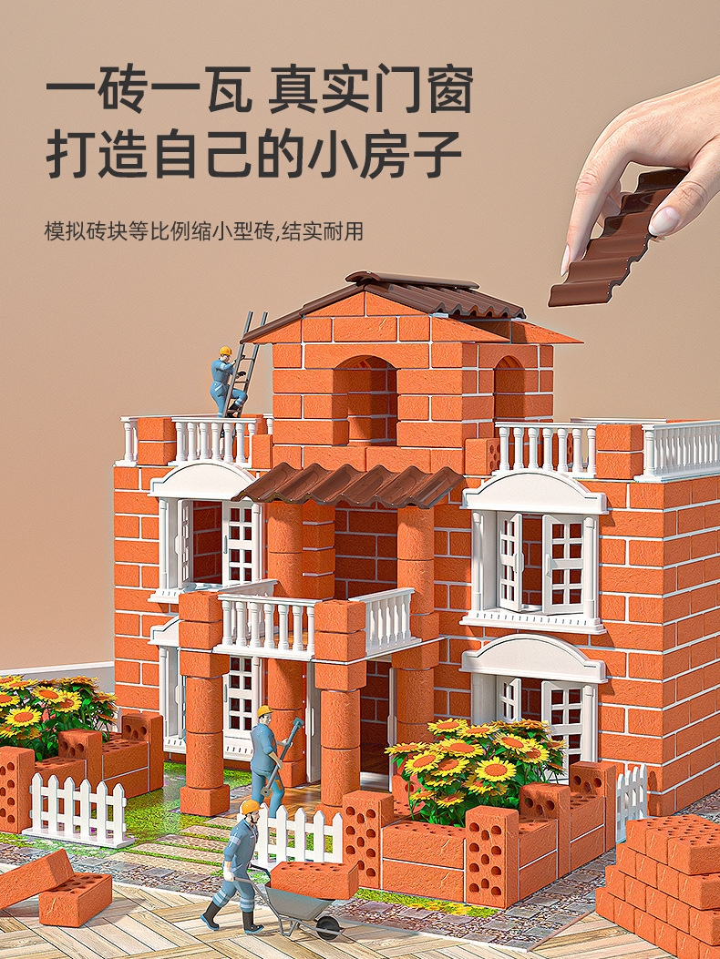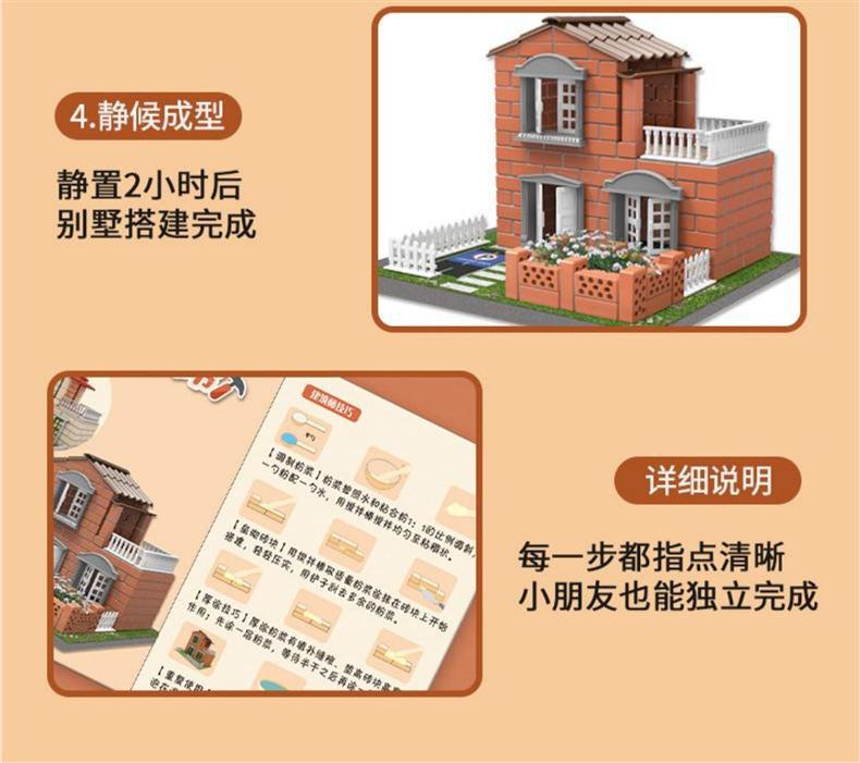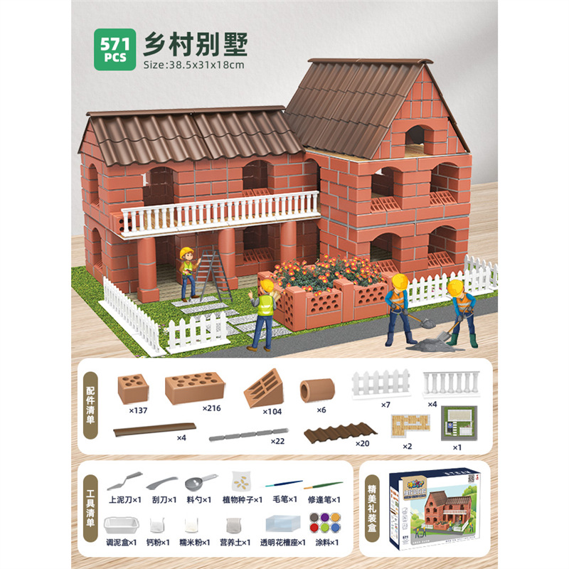 장난감 오두막 어린이 수제 DIY 집 짓기 벽 빌딩 조립 작은 빌라 실제 집 벽돌공 미니 여성 6