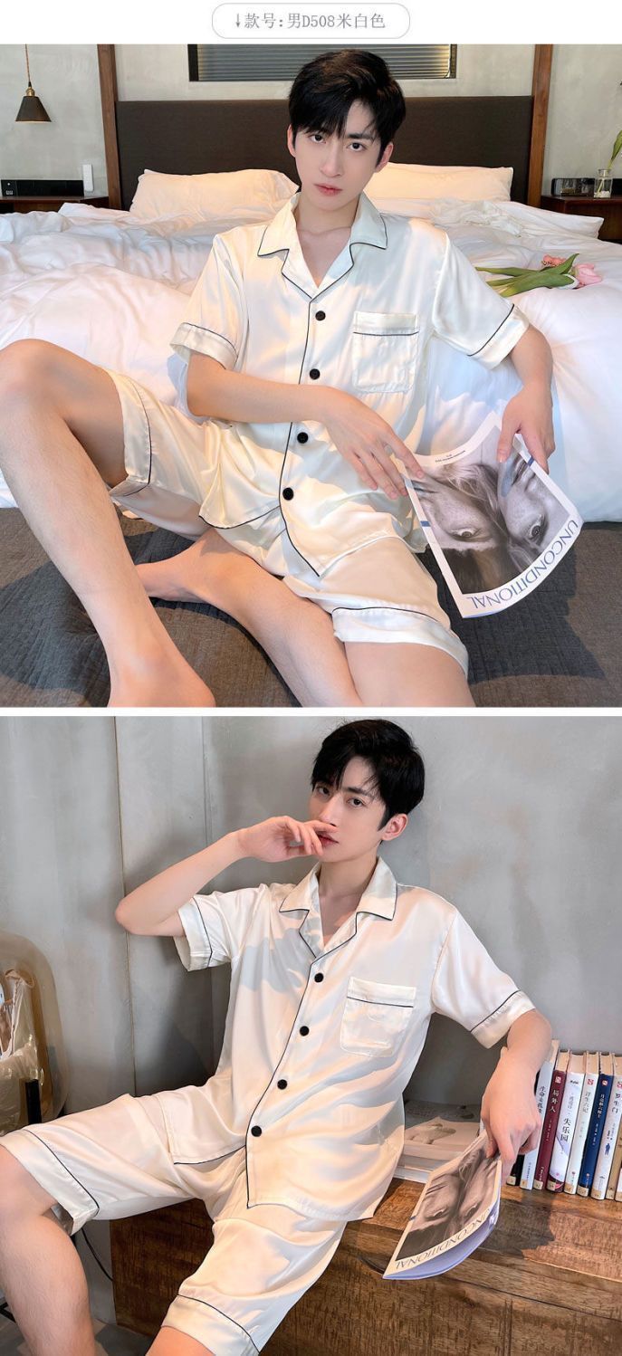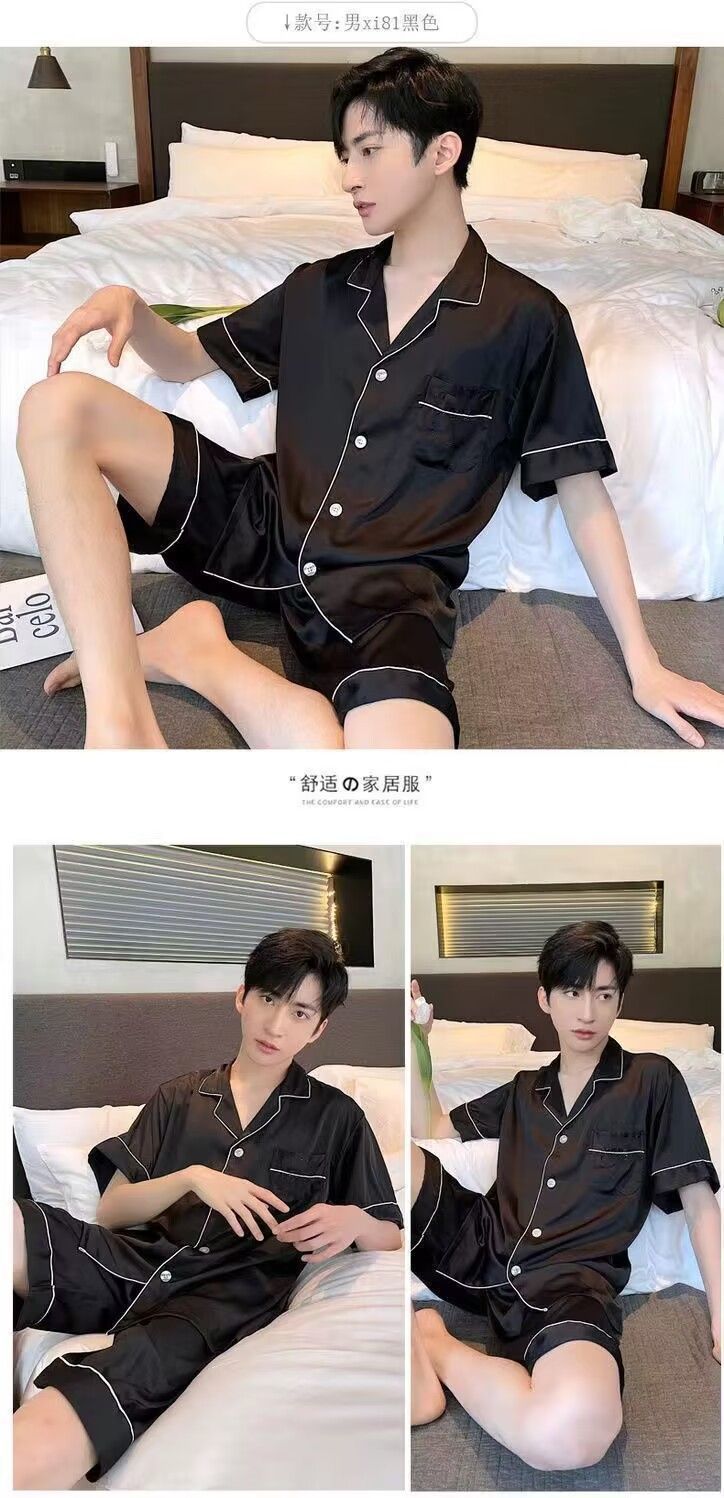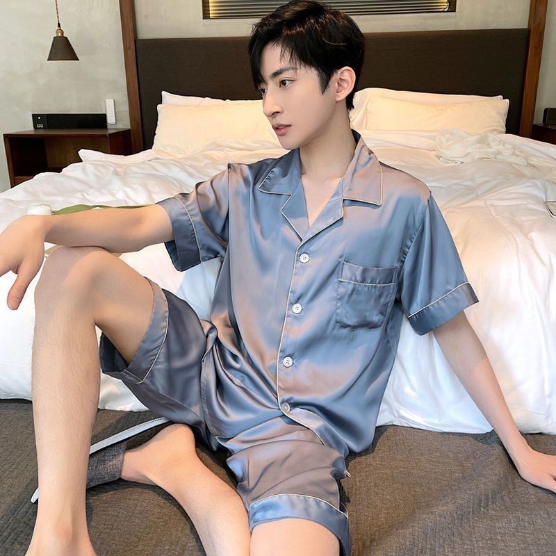 남성용 잠옷 플러스 사이즈 여름 얼음 실크 얇은 반팔 반바지 남성용 느슨한 시뮬레이션 실크 홈웨어 세트 여름스토어 가기