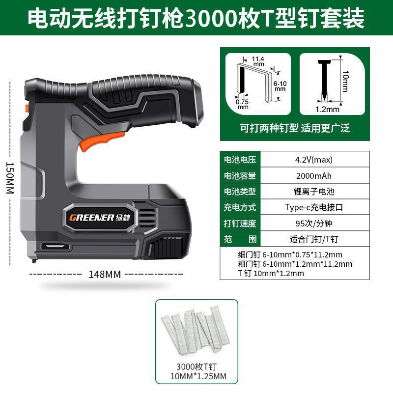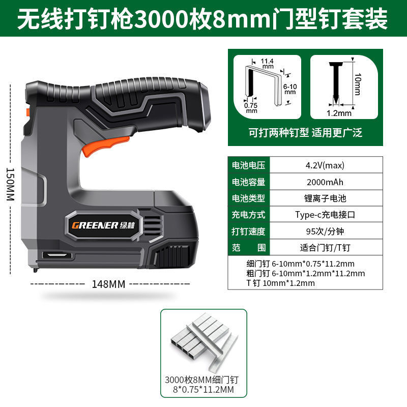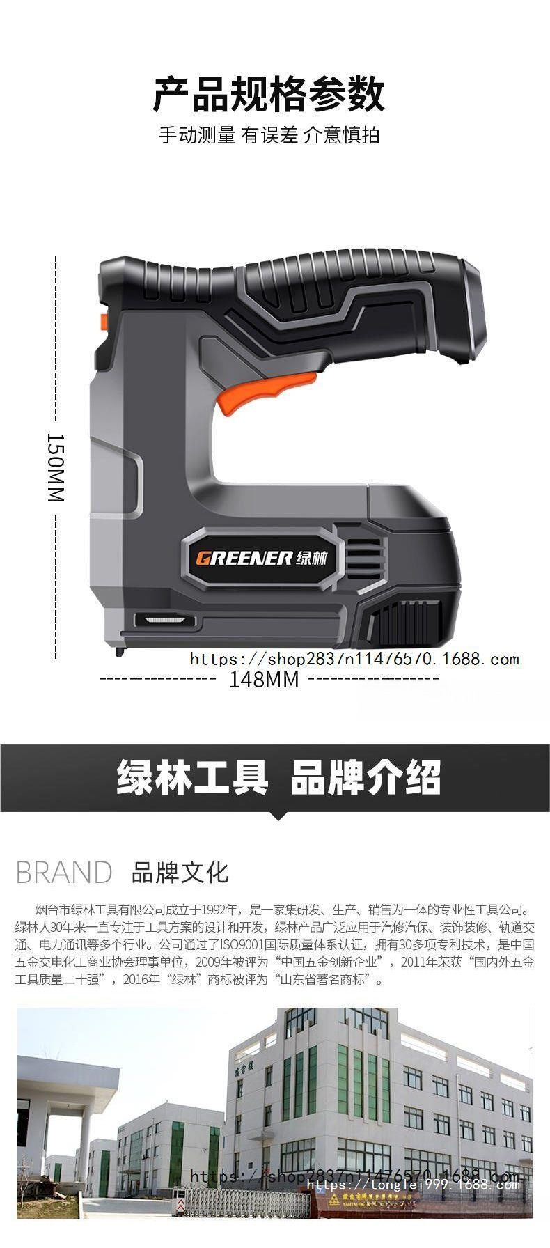그린 우드 전기 네일 건 충전식 리튬 코드 네일 건 홈 장식 나무 문 목공 도구