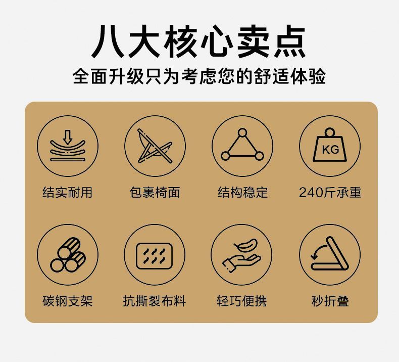 • Benzuda 특수 크림 색상 소형 접이식 의자 플러스 무게 버전 [내하중 105kg [