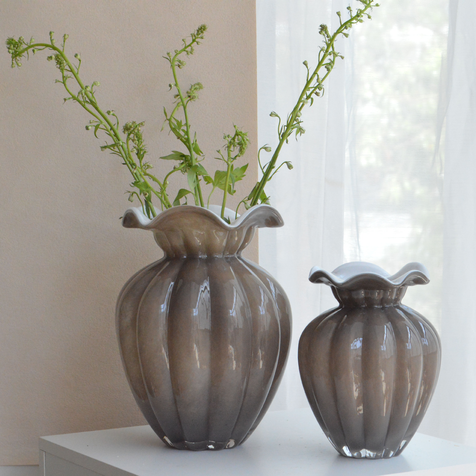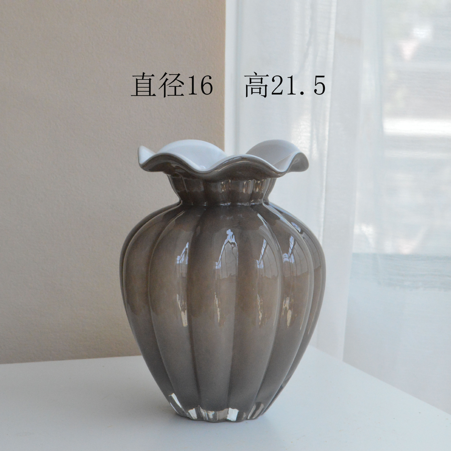 북유럽 수제 물결 모양의 레이스 회갈색 큰 배 호박 꽃병 모델 룸 거실 데스크탑 장식 꽃병