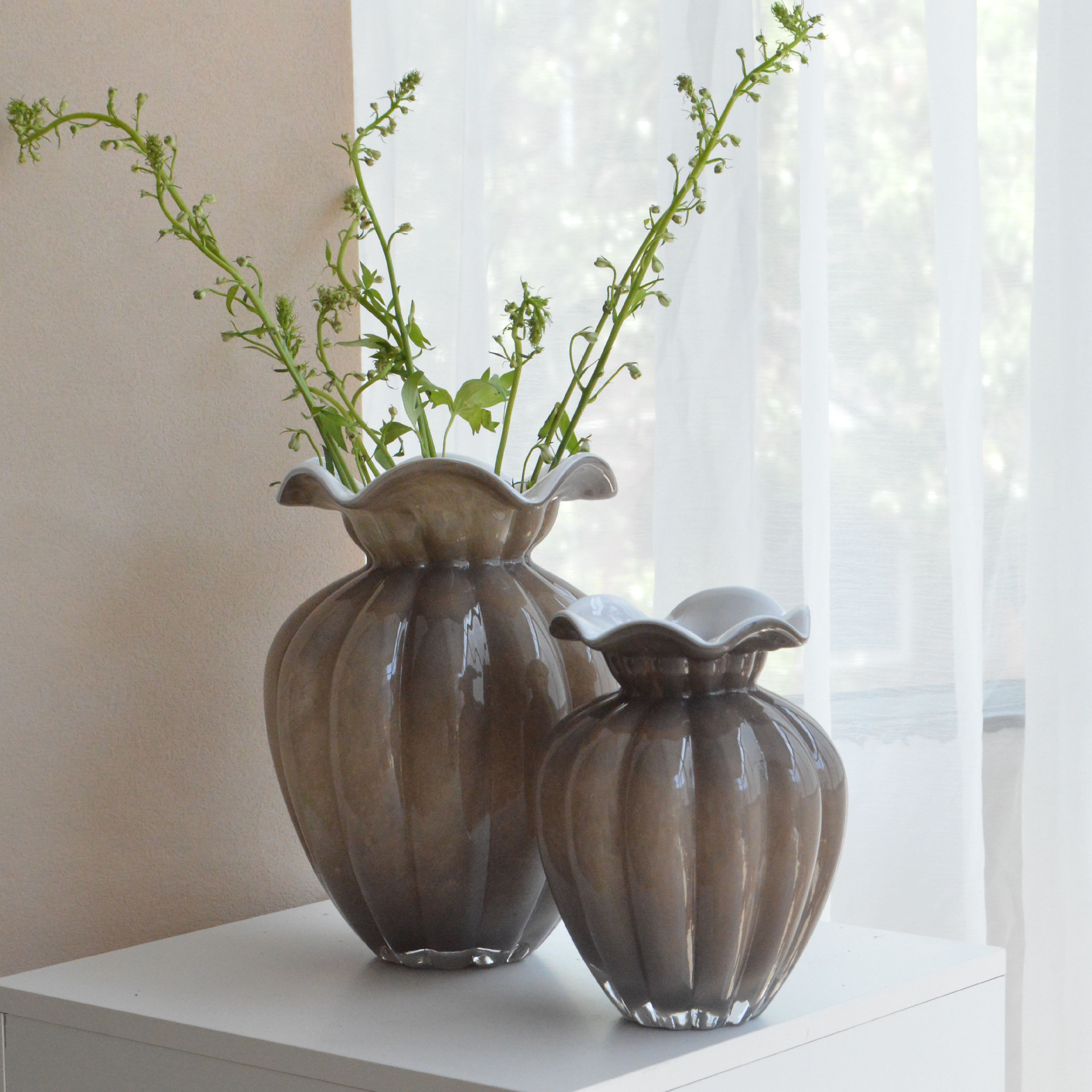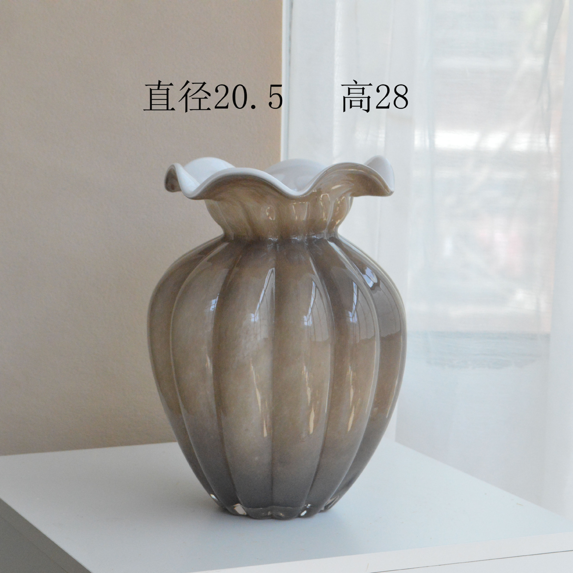 북유럽 수제 물결 모양의 레이스 회갈색 큰 배 호박 꽃병 모델 룸 거실 데스크탑 장식 꽃병스토어 가기