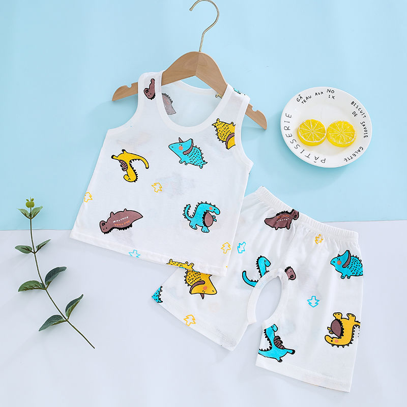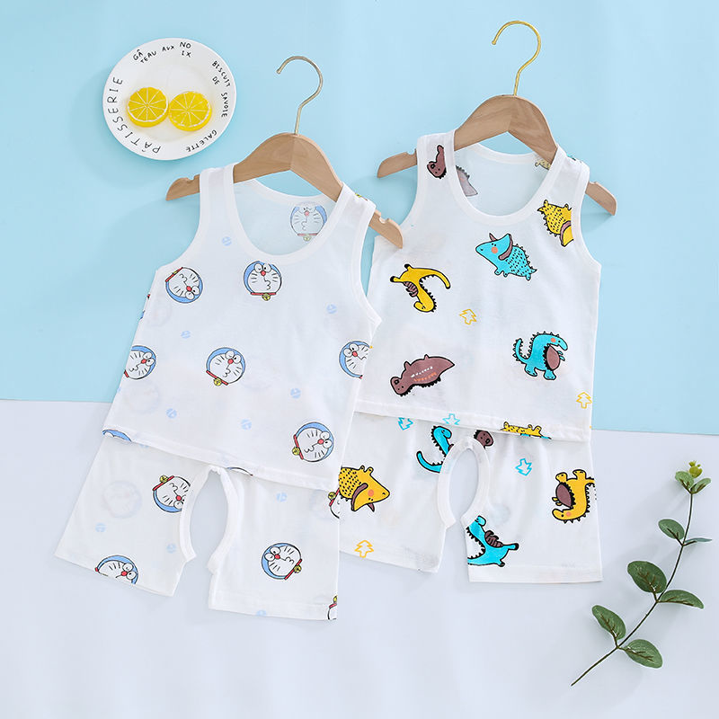 아기 정장 여름 소년 조끼 가랑이없는 바지 남성과 여성 아기 면화 에어컨 옷 0-3 소녀 겉옷스토어 가기