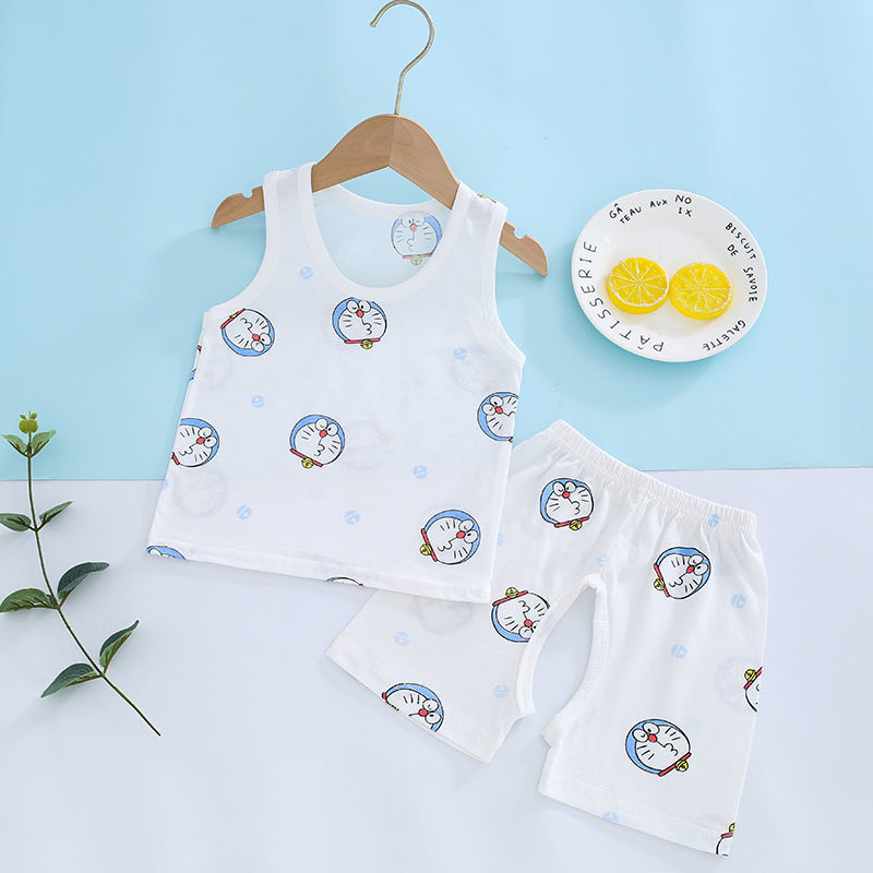 아기 정장 여름 소년 조끼 가랑이없는 바지 남성과 여성 아기 면화 에어컨 옷 0-3 소녀 겉옷