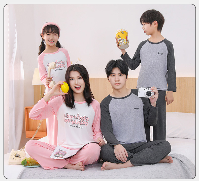어린이 잠옷 모달 소년 가정 옷 부모-어린이 에어컨 옷 여아 긴팔 바지 대형 어린이 아이스 실크 세트