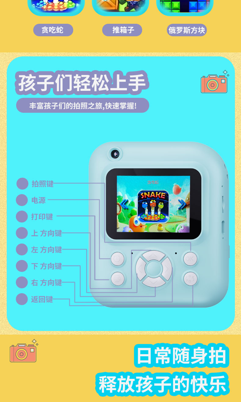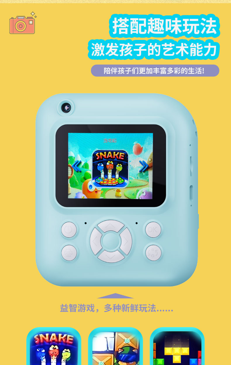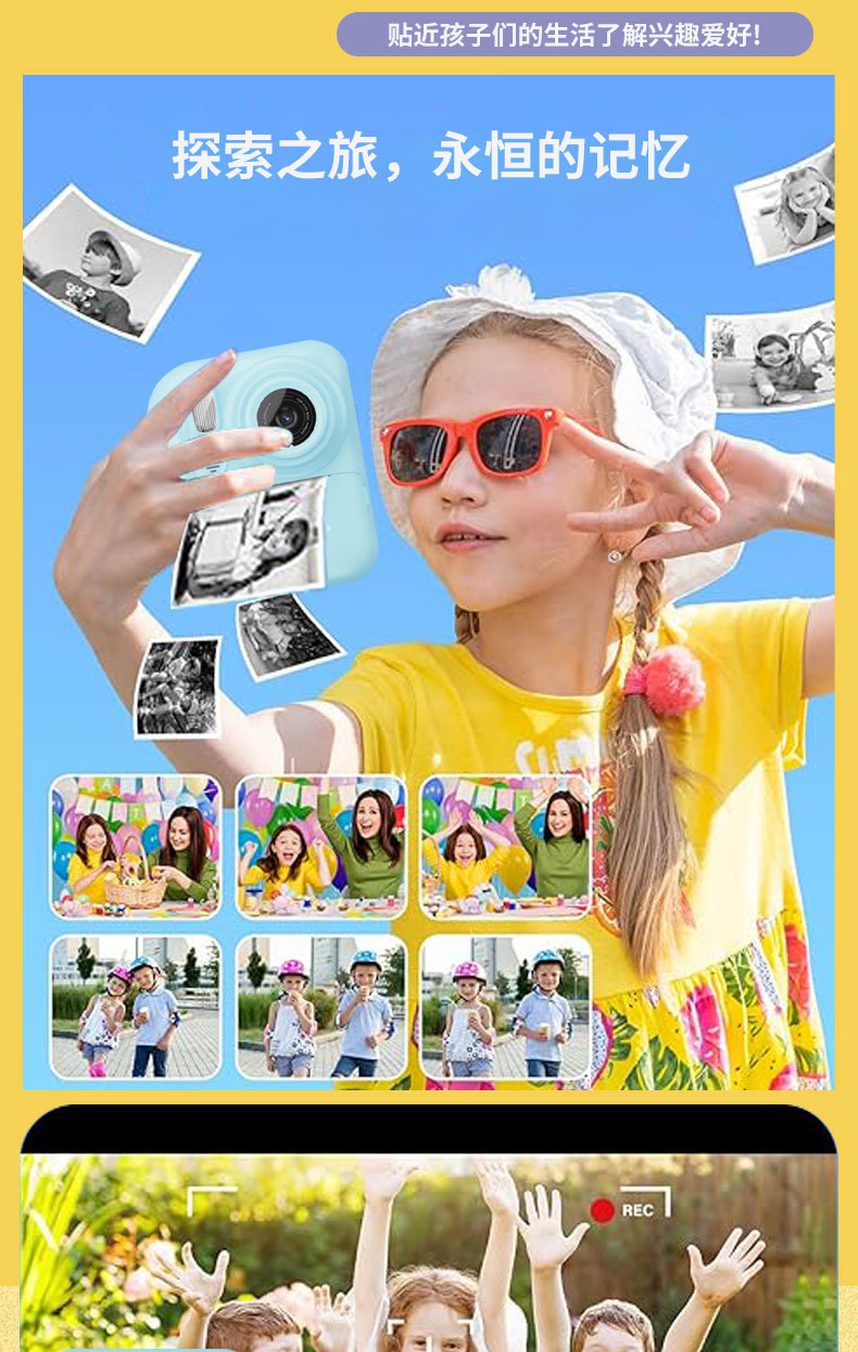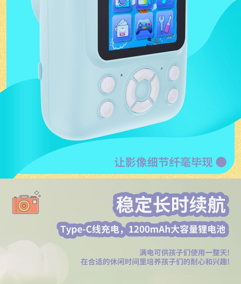 국경 간 새로운 Q1 고화질 어린이 카메라 폴라로이드 사진 인쇄 카메라 학생 선물 전면 및 후면 듀얼 카메라스토어 가기