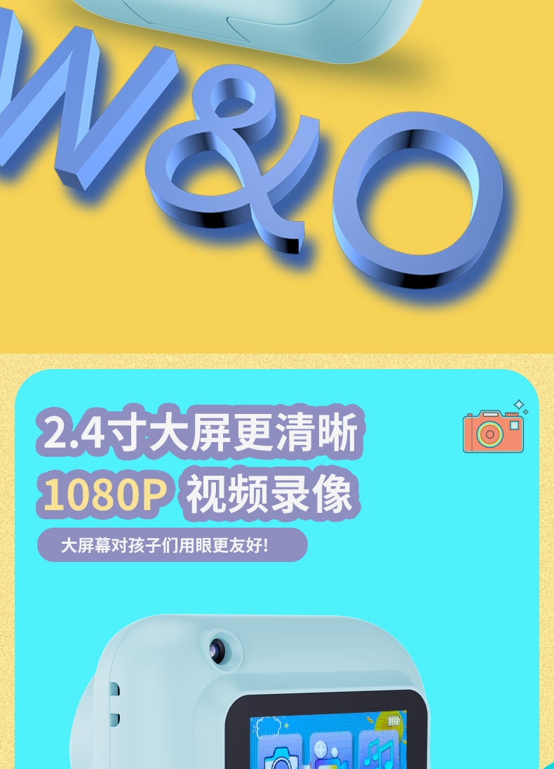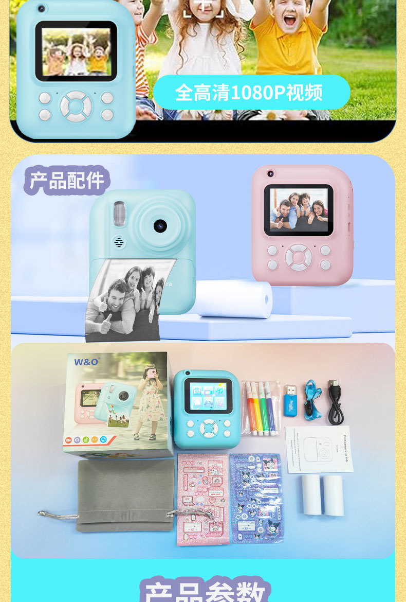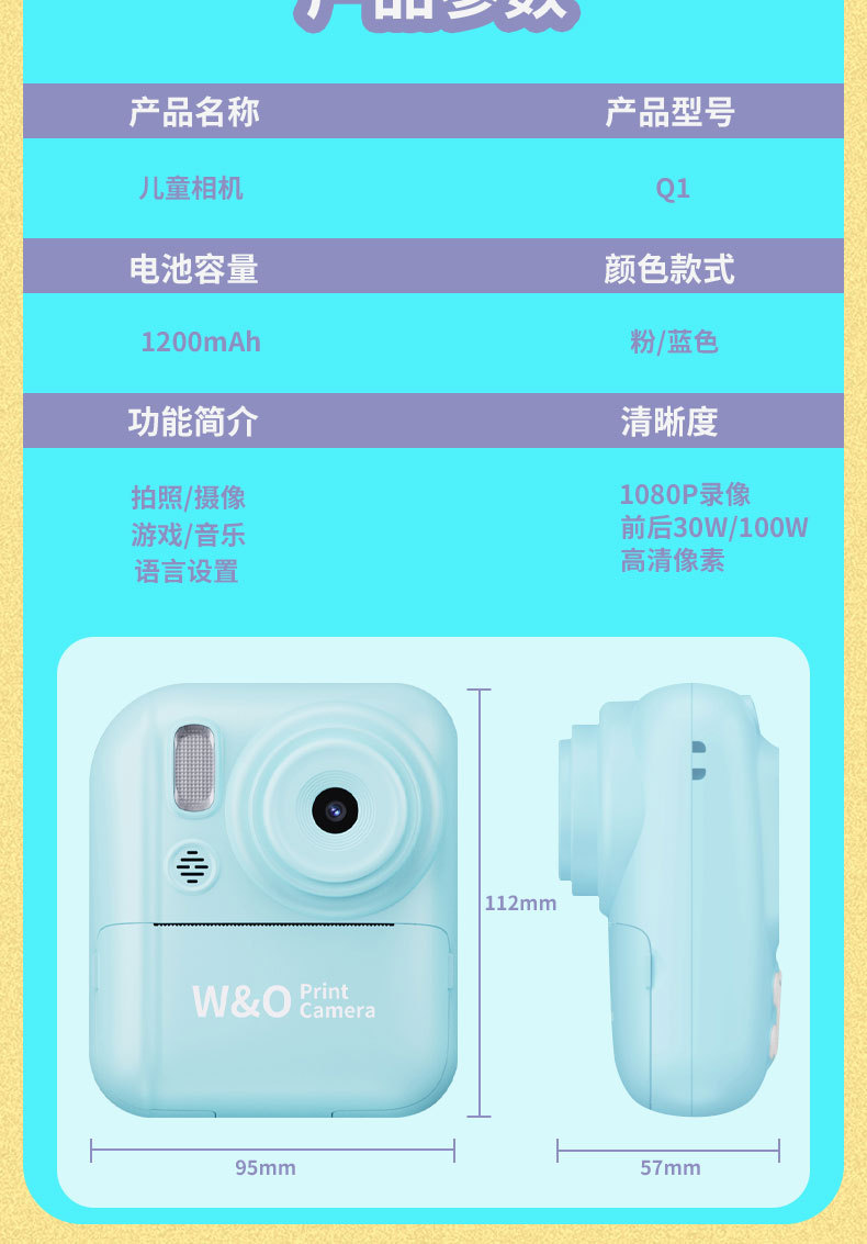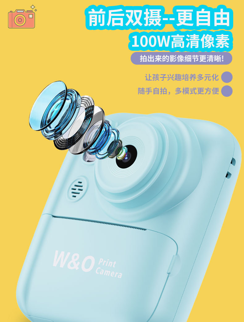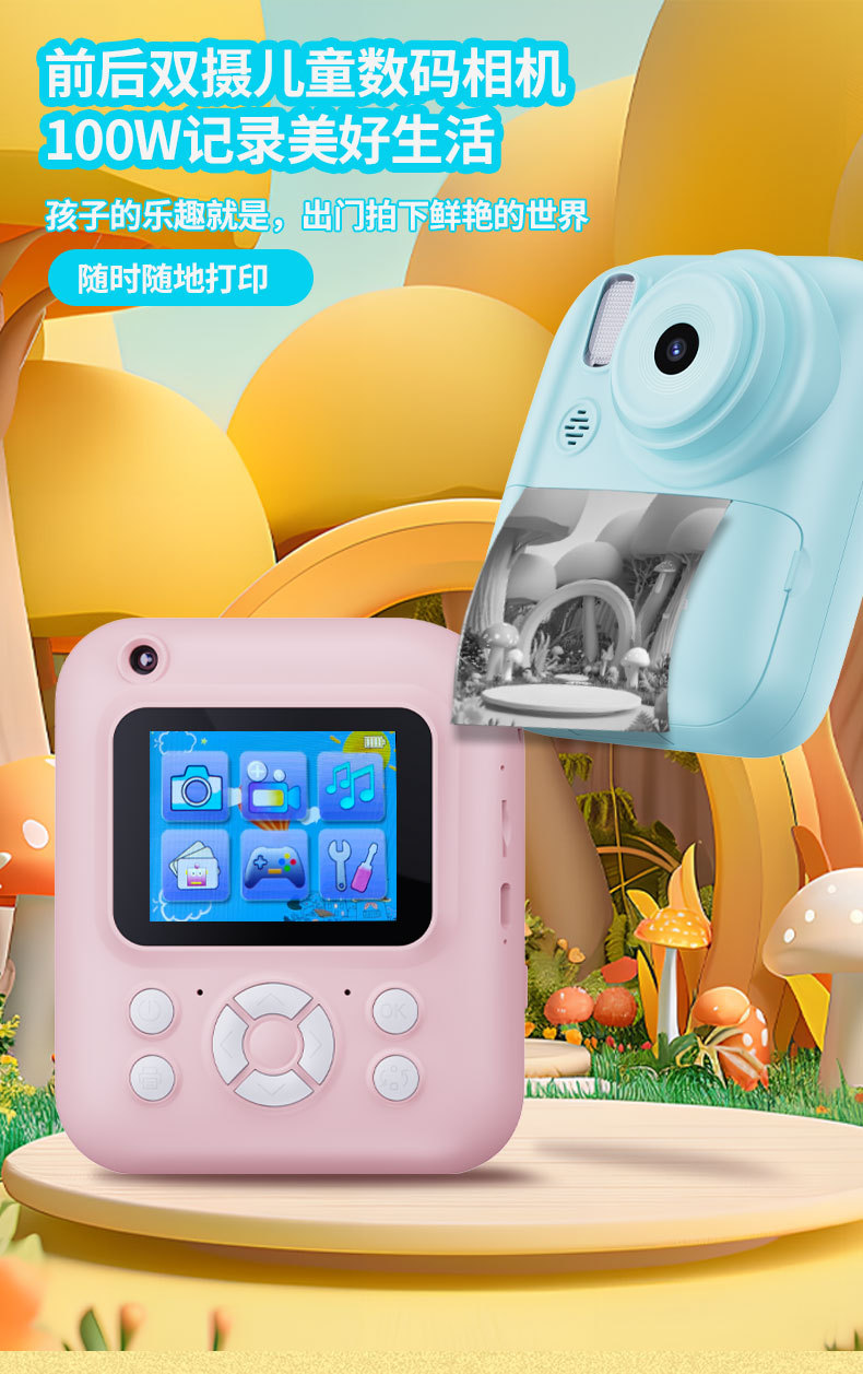 국경 간 새로운 Q1 고화질 어린이 카메라 폴라로이드 사진 인쇄 카메라 학생 선물 전면 및 후면 듀얼 카메라