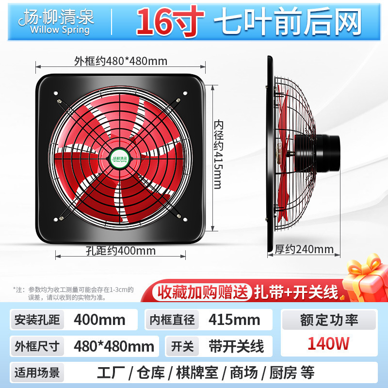 • 16inch [업그레이드된 7개의 블레이드, 큰 풍량, 전면 및 후면 설치, 스위칭 전원 공급 장치가 있는 강력한 파워 모터