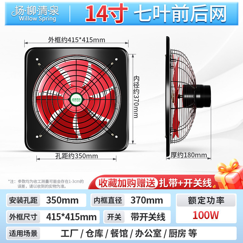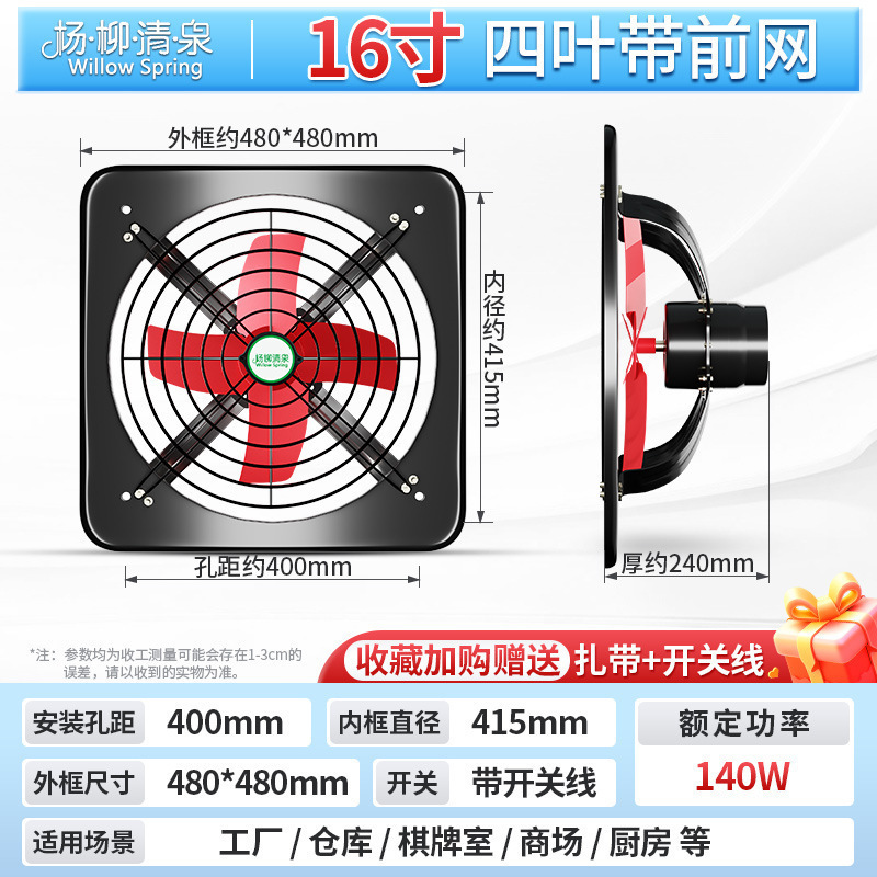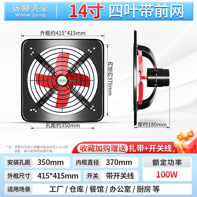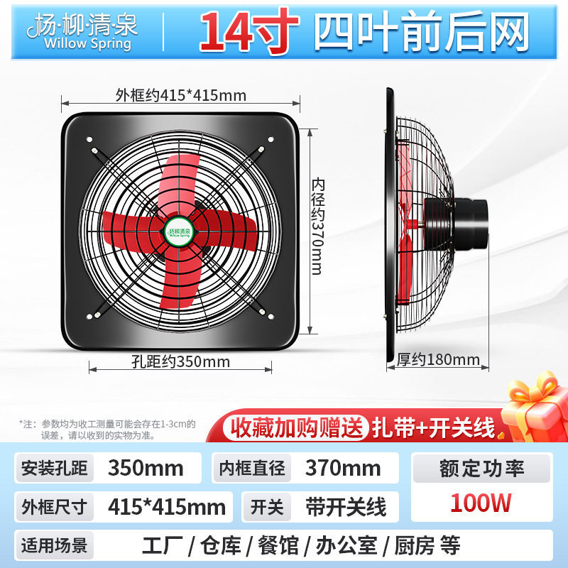 • 14inch [전면 및 후면에 4개의 잎, 스위칭 전원 코드 및 설치 타이가 있는 강력한 전원 모터