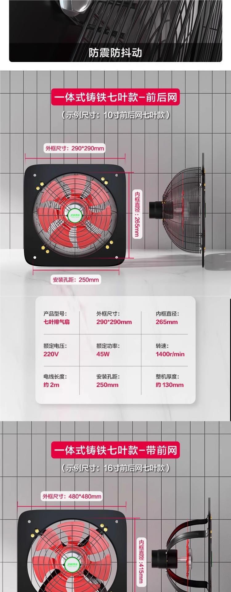 • 10inch [업그레이드된 7개의 블레이드, 큰 풍량, 전면 및 후면 설치, 스위칭 전원 공급 장치가 있는 강력한 파워 모터