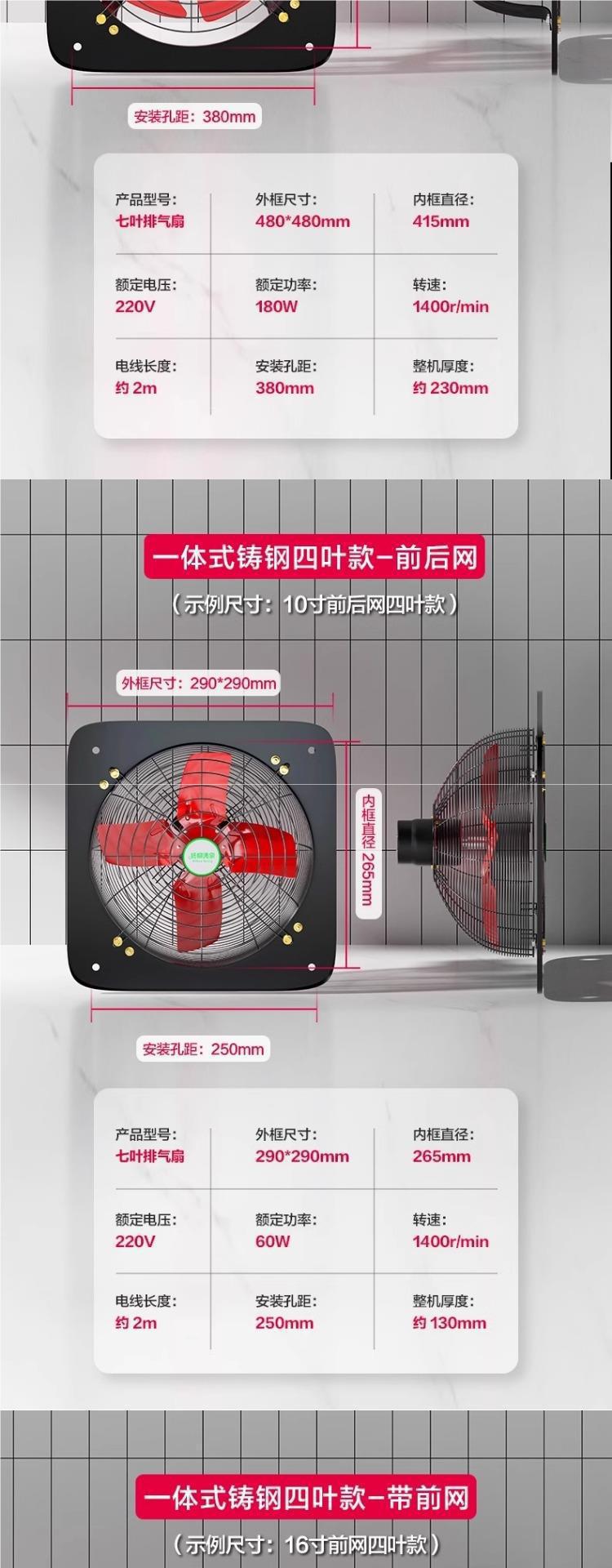 • 14inch [업그레이드된 7개의 블레이드, 큰 풍량, 전면 및 후면 설치, 스위칭 전원 공급 장치가 있는 강력한 파워 모터