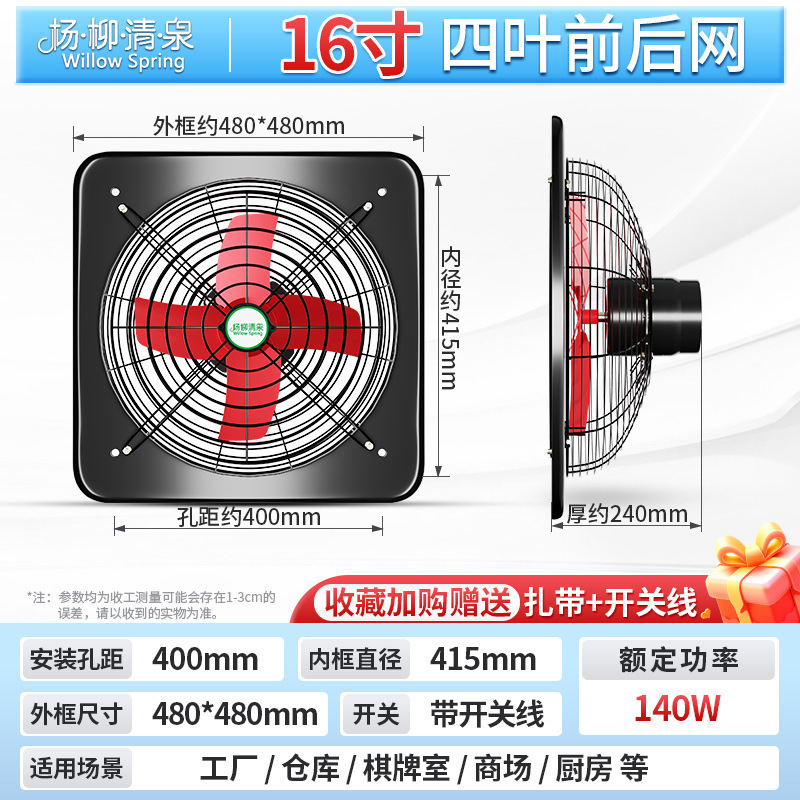 • 16inch [전면 및 후면에 4개의 잎이 있고 스위칭 전원 코드가 있는 강력한 전원 모터 및 설치 키트가 함께 제공됩니다.