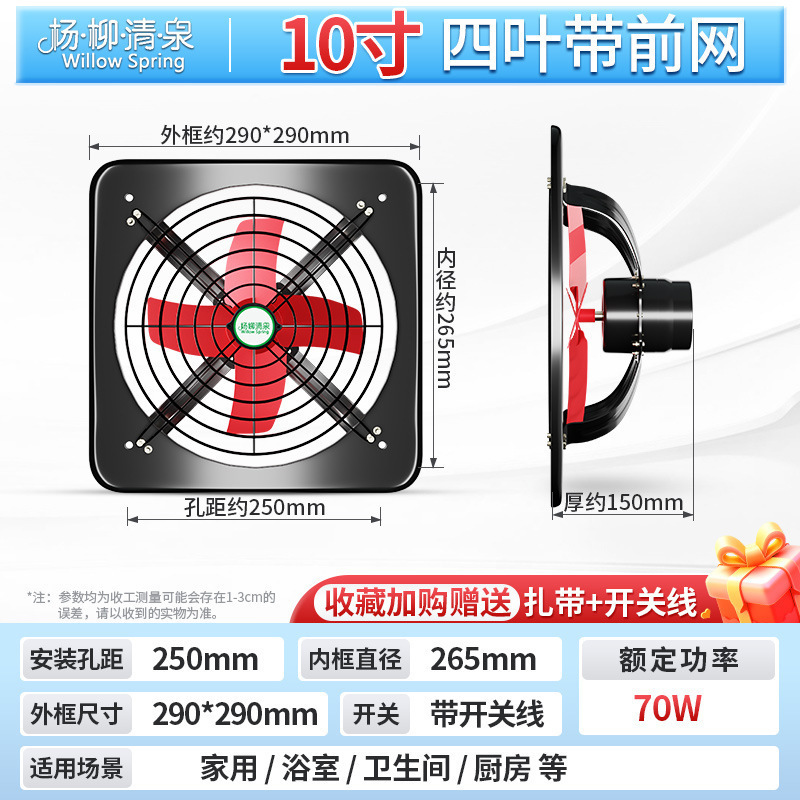 • 10inch [전면 및 후면에 4개의 잎, 스위칭 전원 코드 및 설치 타이가 있는 강력한 전원 모터