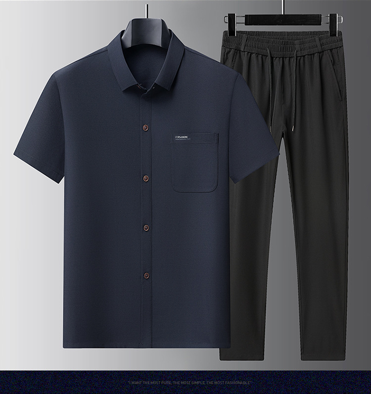 여름 얼음 실크 반팔 셔츠 정장 비즈니스 캐주얼 옷깃 티셔츠 중국 스타일 중년 및 노인 남성 티셔츠
