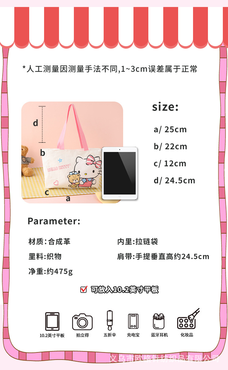 공장 아울렛 산리오 정품 공인 대용량 캔버스 가방 쿨로 미 어깨 여행 쇼핑 소녀 가방스토어 가기