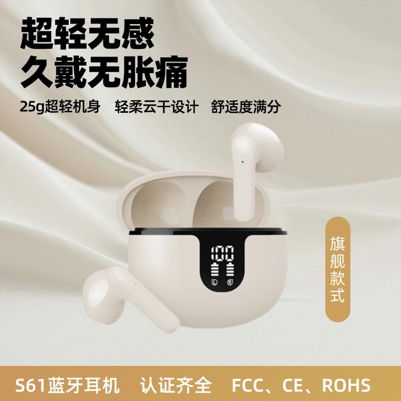 국경 간 소스 tws 개인 모델 S61 Bluetooth 5.3 헤드셋 듀얼 Wow 마크 통화 소음 감소 HD 디지털 디스플레이 무선 헤드셋스토어 가기