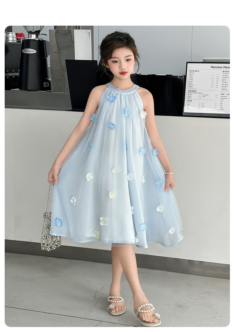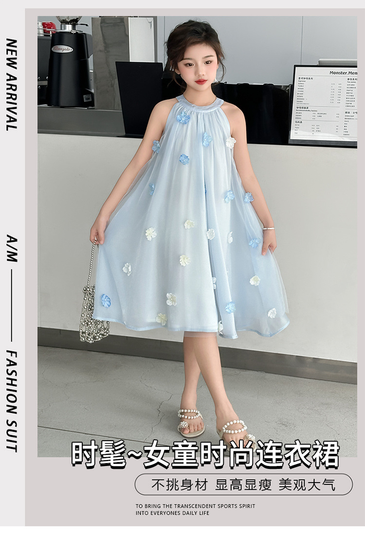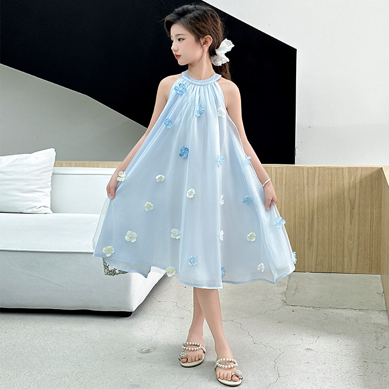 여자 여름 원피스 새로운 한국 스타일 유행 올매치 빅 키즈 어린 소녀 입체 꽃 공주 원피스스토어 가기