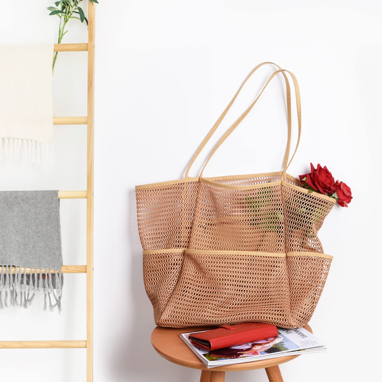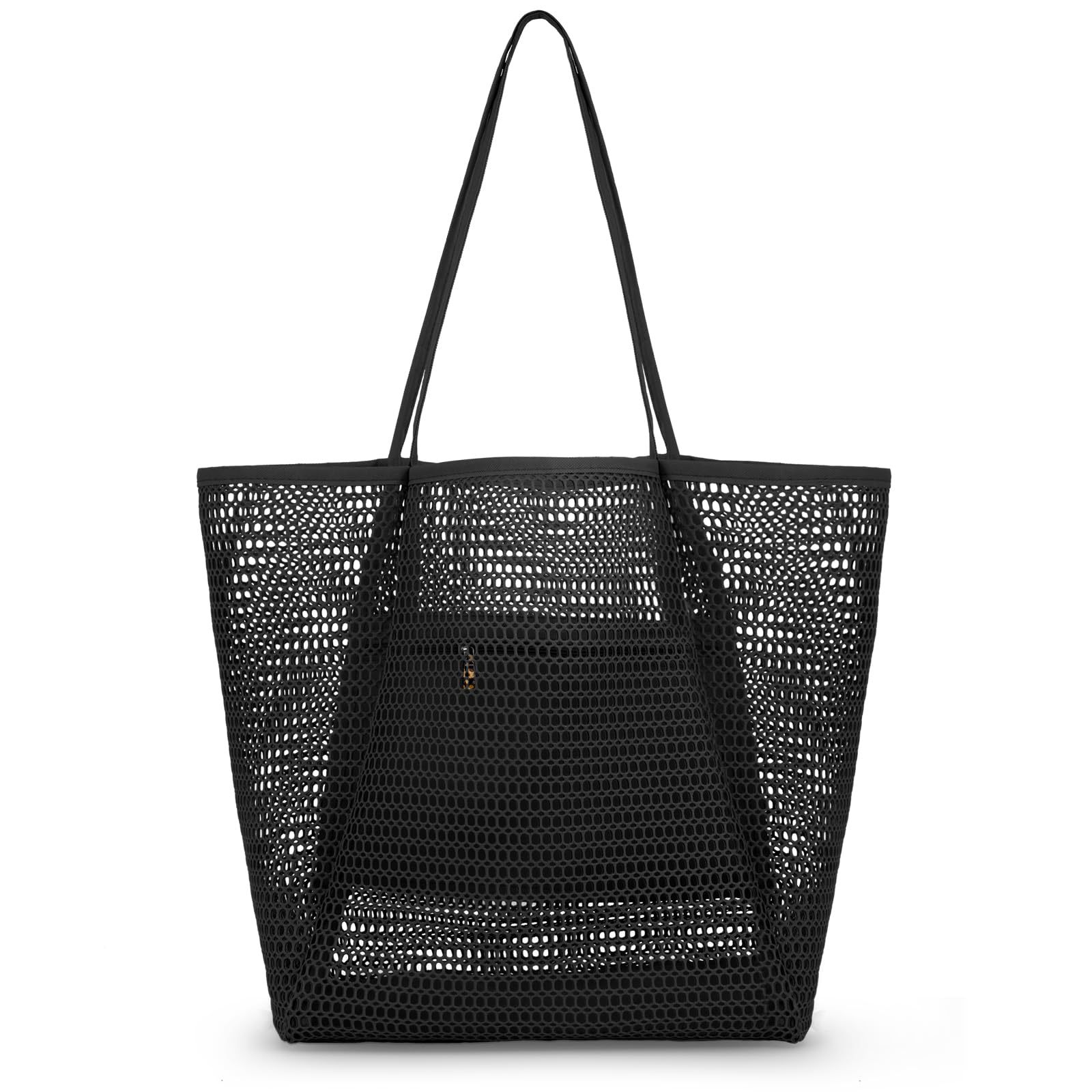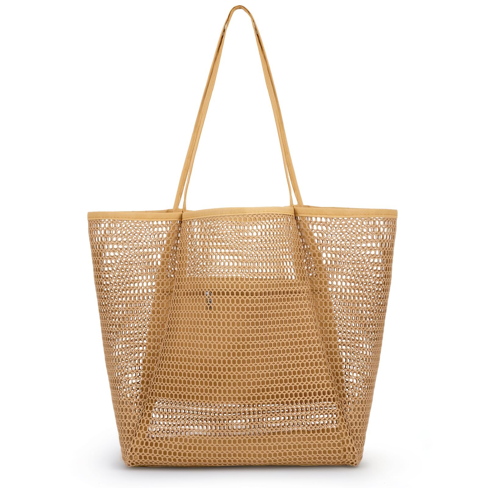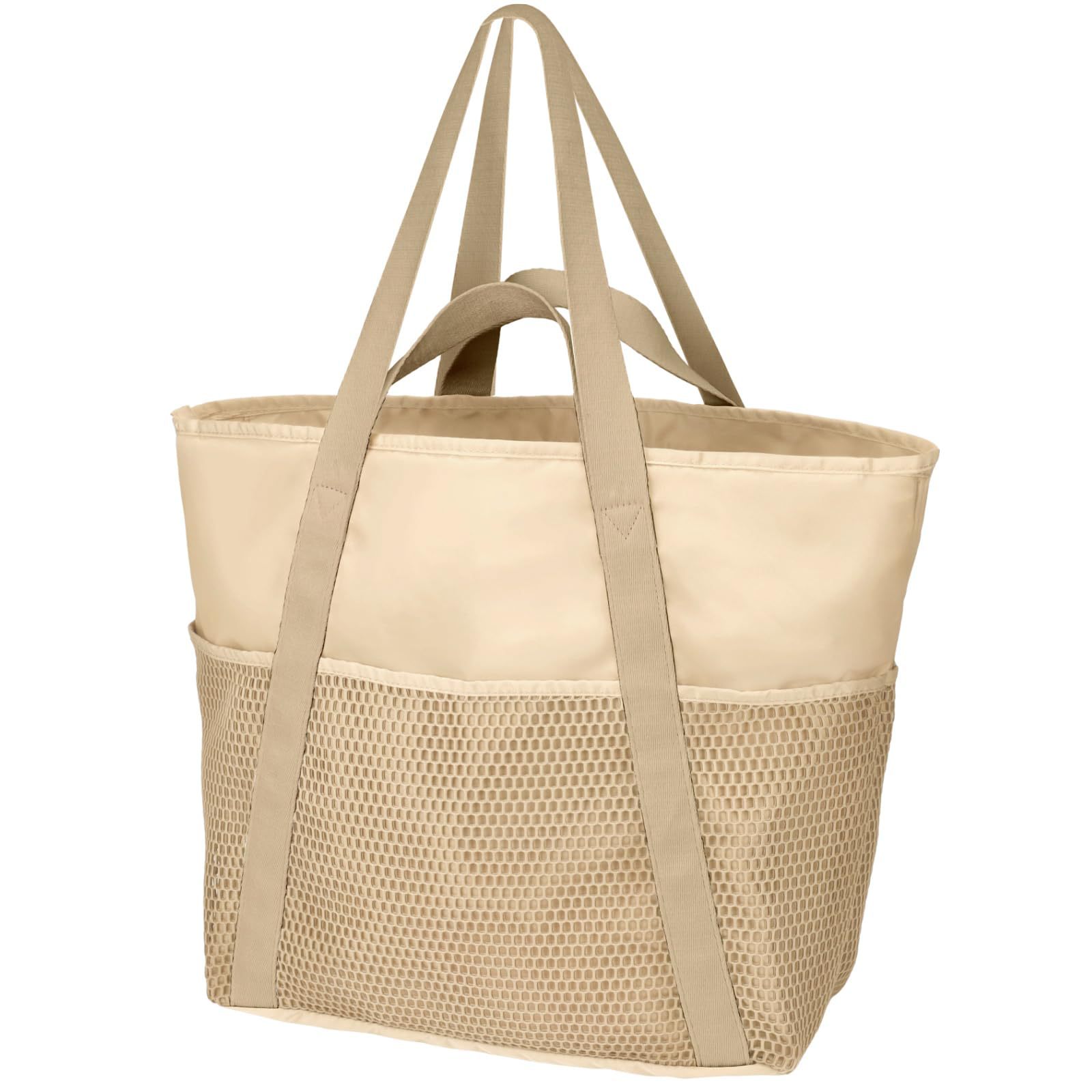 비치 백 대형 방수 모래 방지 접이식 핸드백 (지퍼 메쉬 포켓 포함) 수영장 수영 일일 여행 캠핑스토어 가기