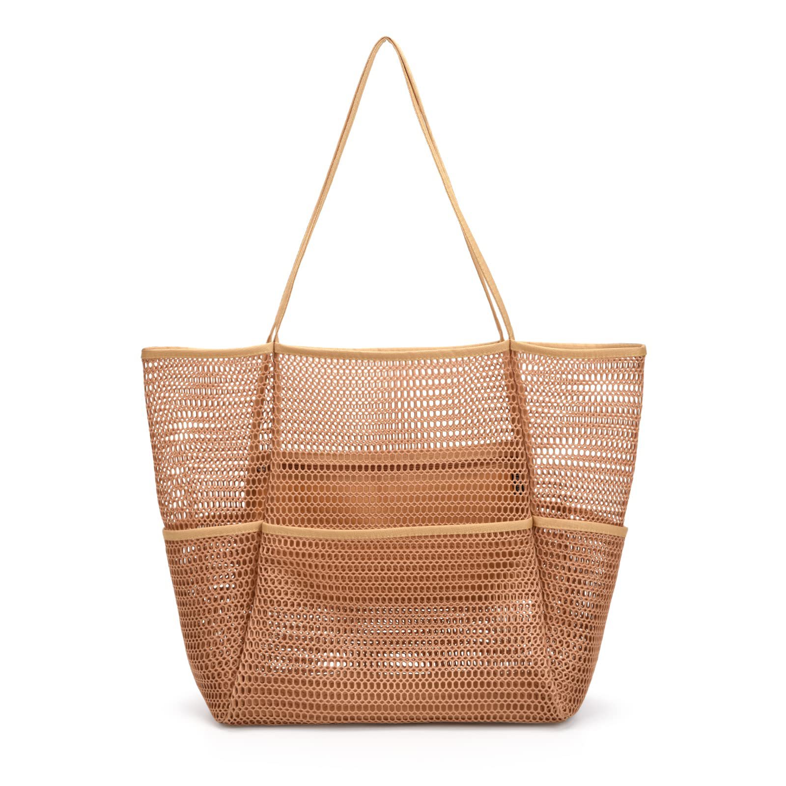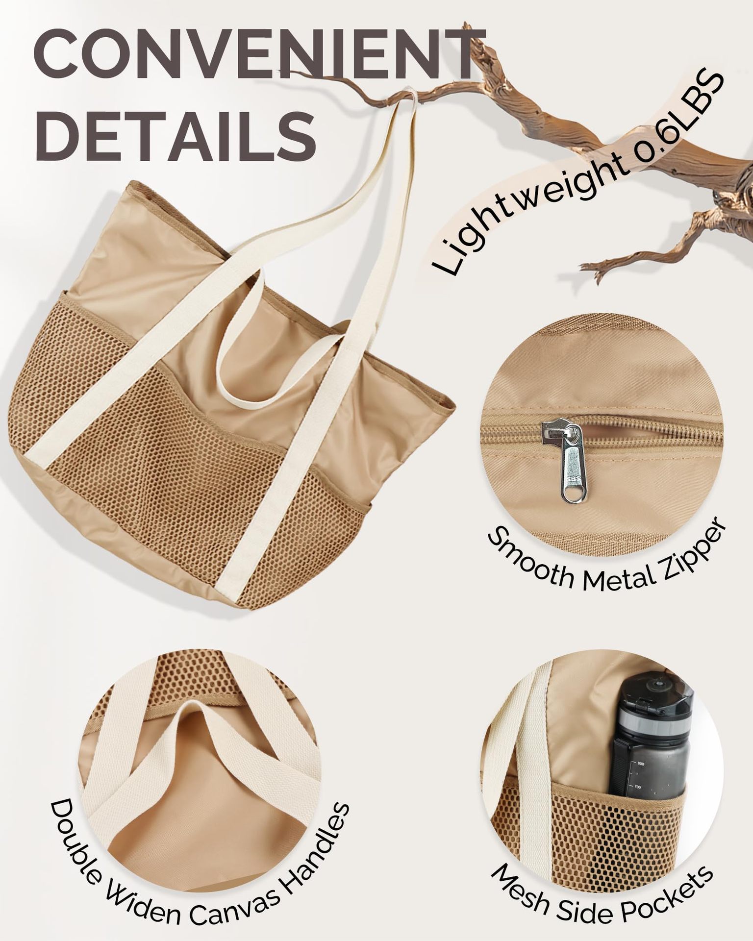 비치 백 대형 방수 모래 방지 접이식 핸드백 (지퍼 메쉬 포켓 포함) 수영장 수영 일일 여행 캠핑
