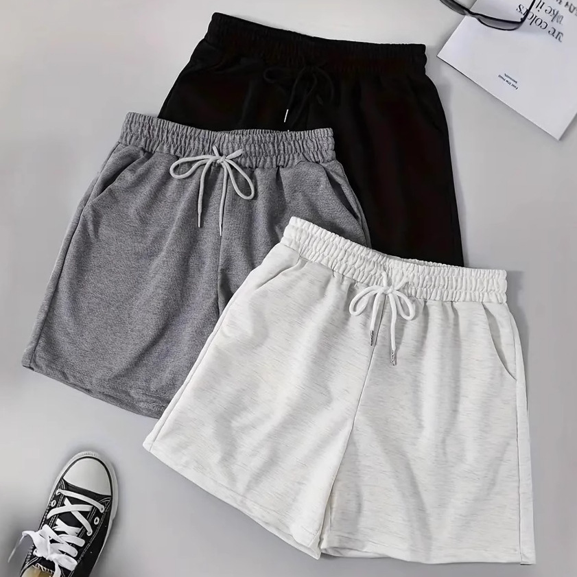 2025 봄 여름 신작 대외 무역 Amazon wish 유럽과 미국의 국경 간 여성 솔리드 컬러 캐주얼 스트레이트 와이드 레그 반바지스토어 가기