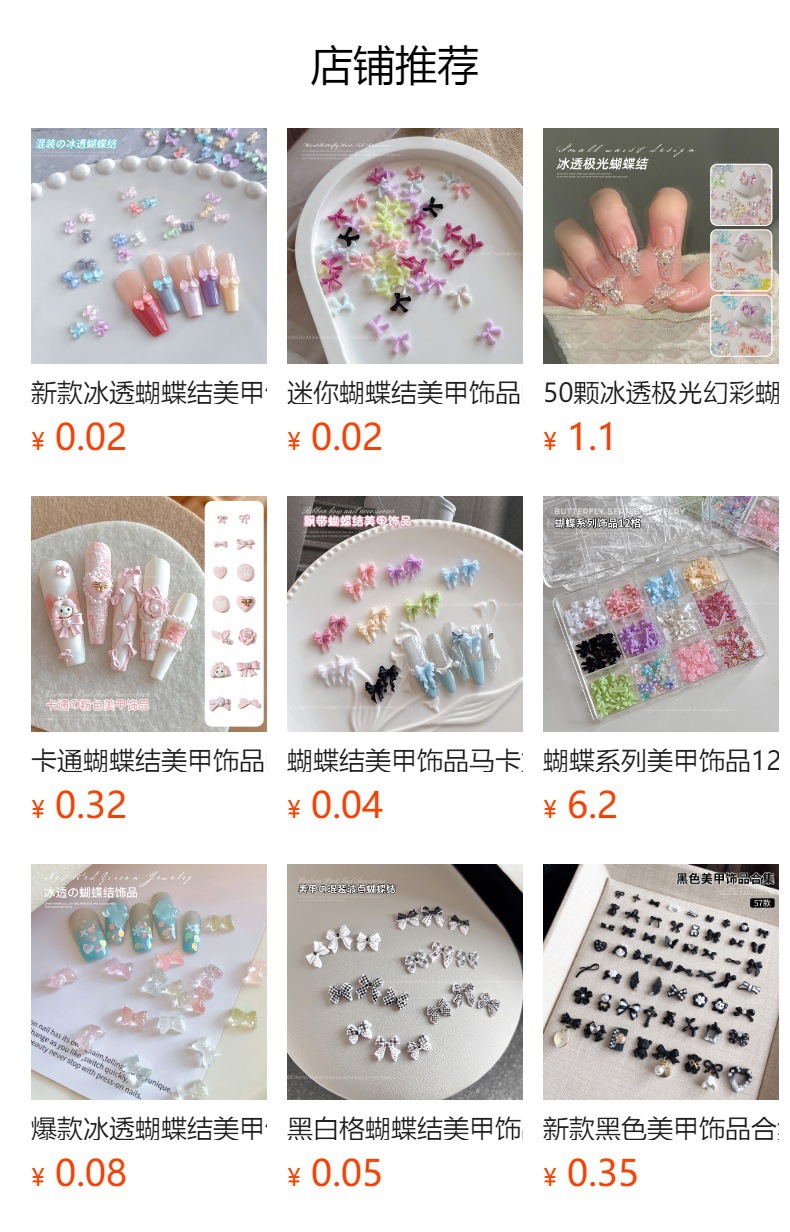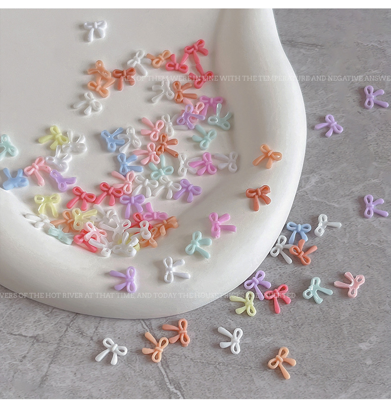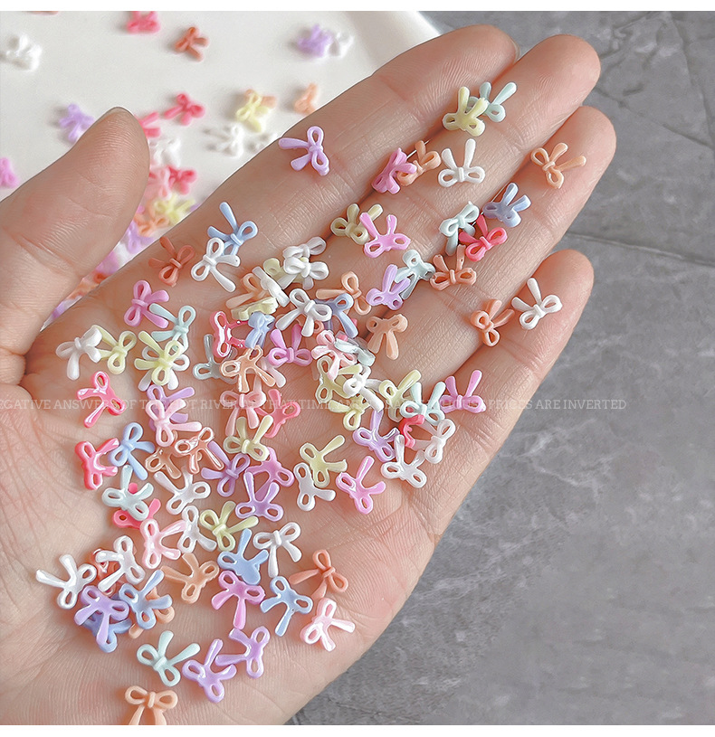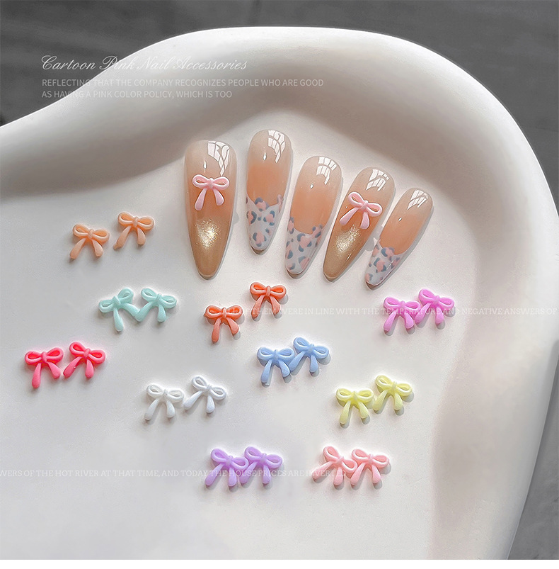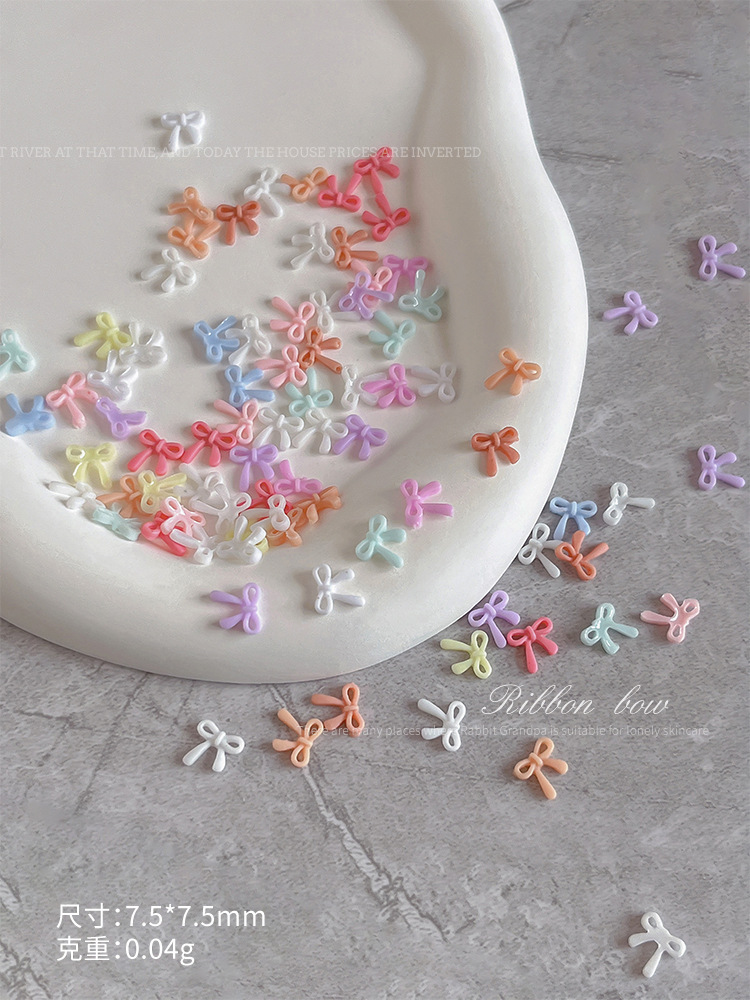 네일 아트 보우 쥬얼리 2025 새로운 색상 중공 플로팅 보우 넥타이 수지 만화 네일 장식 도매스토어 가기
