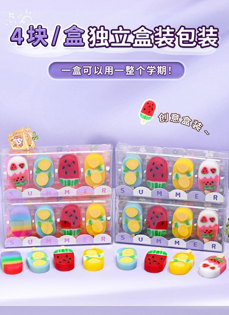 크리 에이 티브 지우개 아이스 캔디 모양 지우개 어린이 재미있는 문구 귀여운 미니 가죽 지우개 연필 지우개