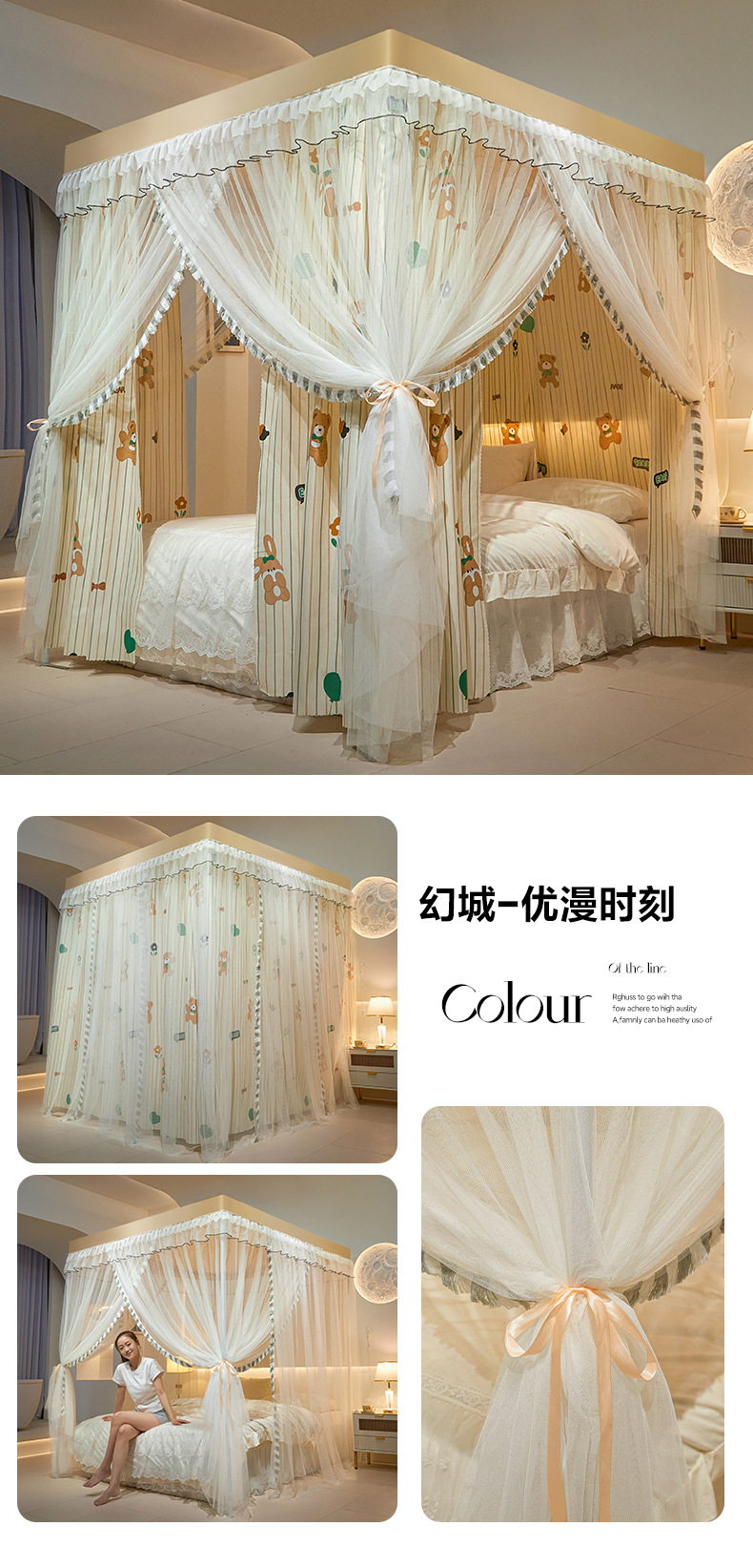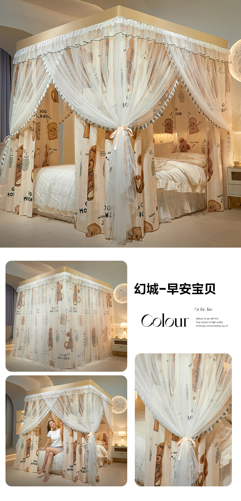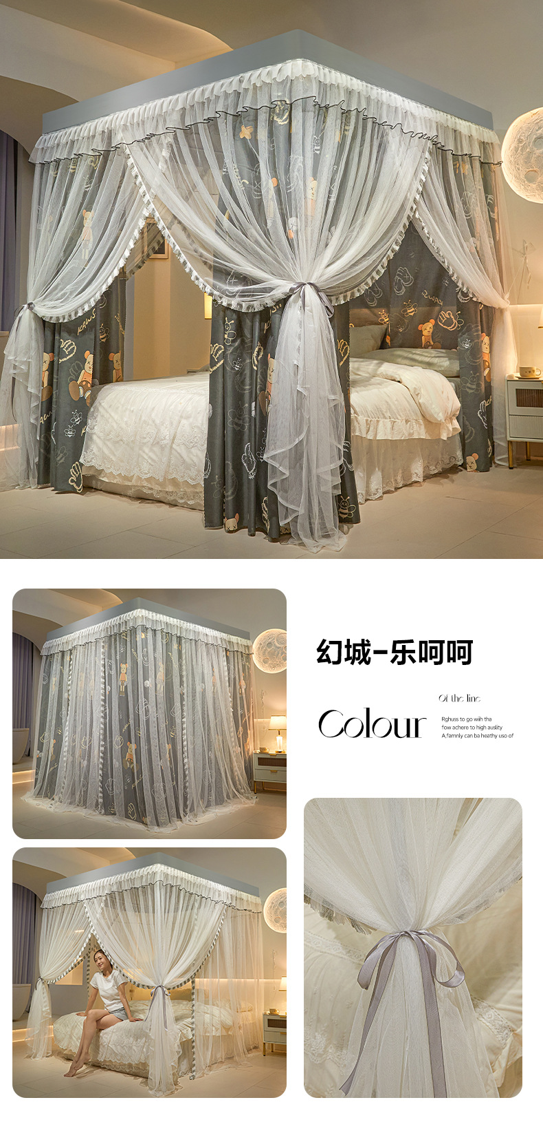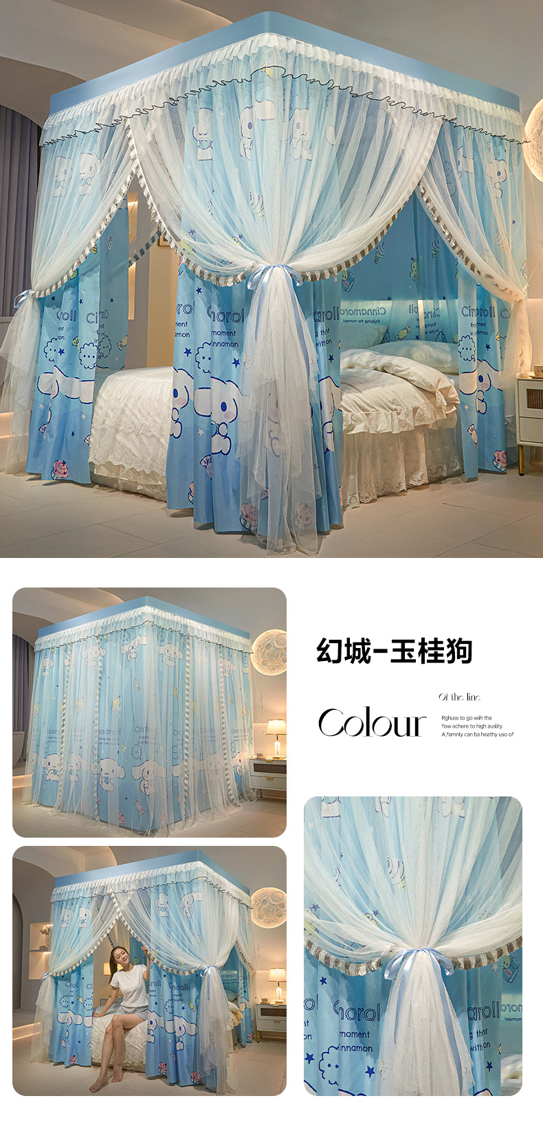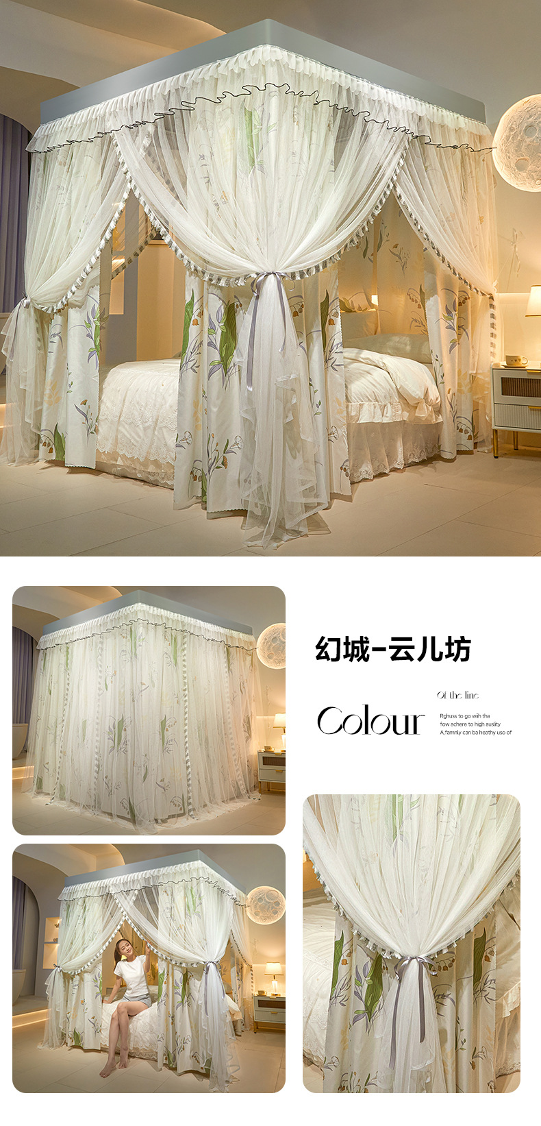 모기장 사계절용 가정용 침실 바닥형 공주풍 침대 커튼 1.8m 더블 침대 대형 침대 모기 방지 침대 커튼 인스 스타일스토어 가기