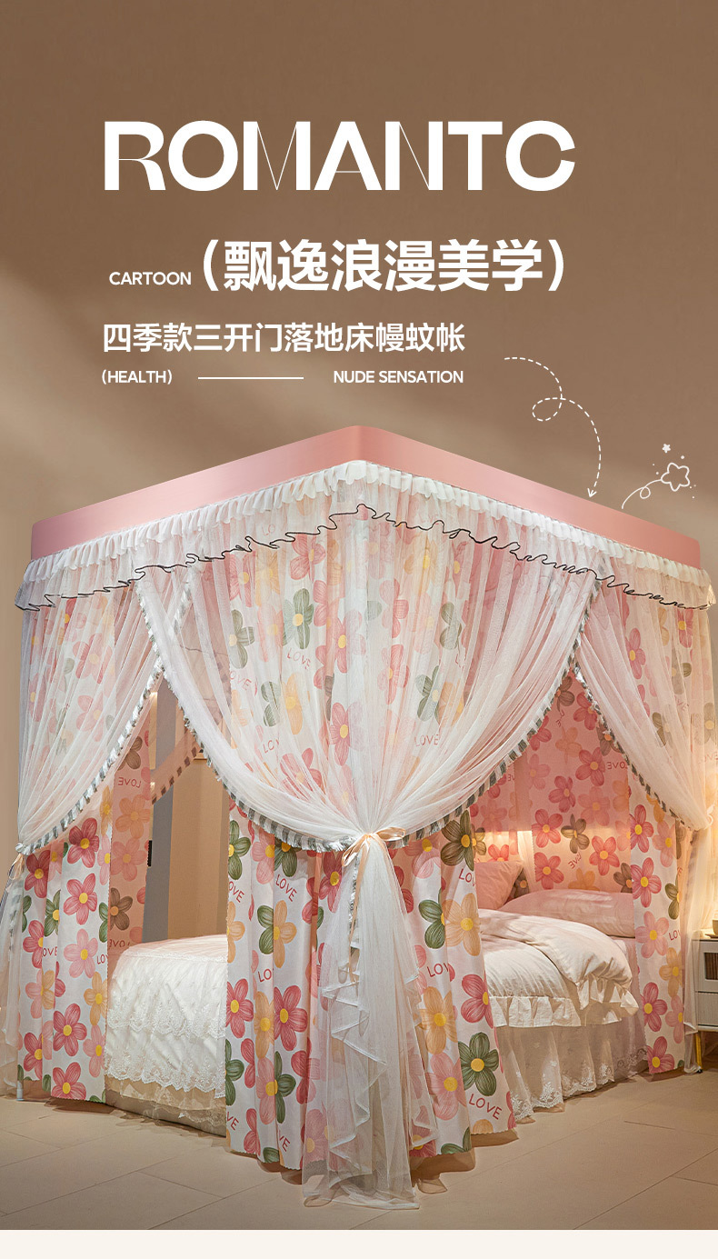 모기장 사계절용 가정용 침실 바닥형 공주풍 침대 커튼 1.8m 더블 침대 대형 침대 모기 방지 침대 커튼 인스 스타일
