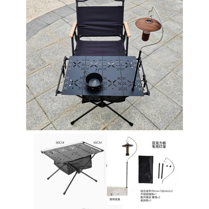 • 블랙 전술 테이블 + 메쉬 백 + 라이트 스탠드(접이식 테이블, 알루미늄 합금 테이블 다리) 내하중 15
