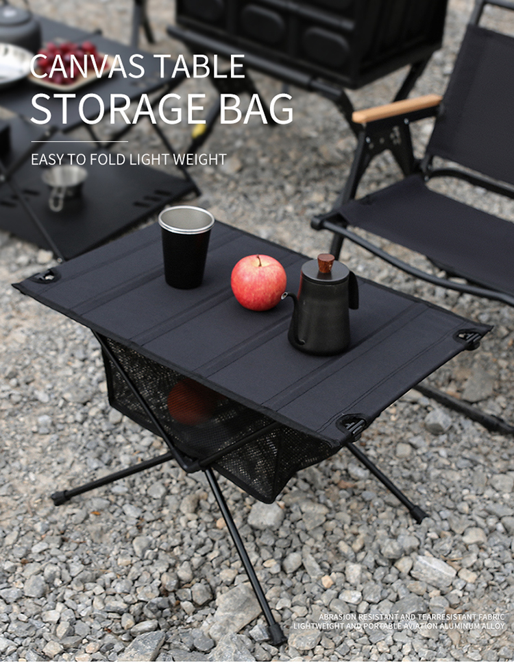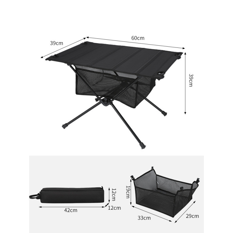 • 검정색 접이식 테이블 + 나일론 메쉬 보관 가방 평행 막대 알루미늄 합금 옥스포드 천 데스크탑