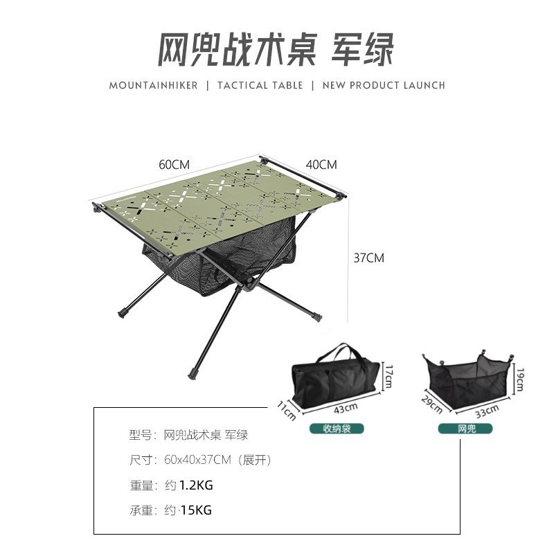 • 녹색 전술 테이블 + 메쉬 백(접이식 테이블, 알루미늄 합금 테이블 다리), 내하중 15KG