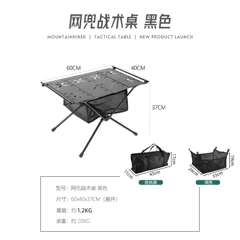 • 블랙 전술 테이블 + 메쉬 백(접이식 테이블, 알루미늄 합금 테이블 다리), 내하중 15KG