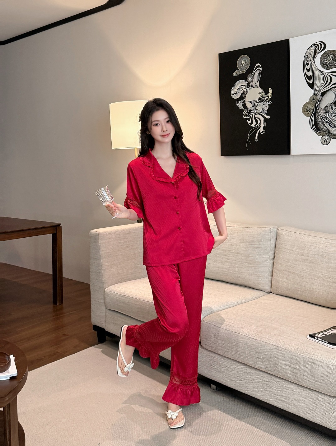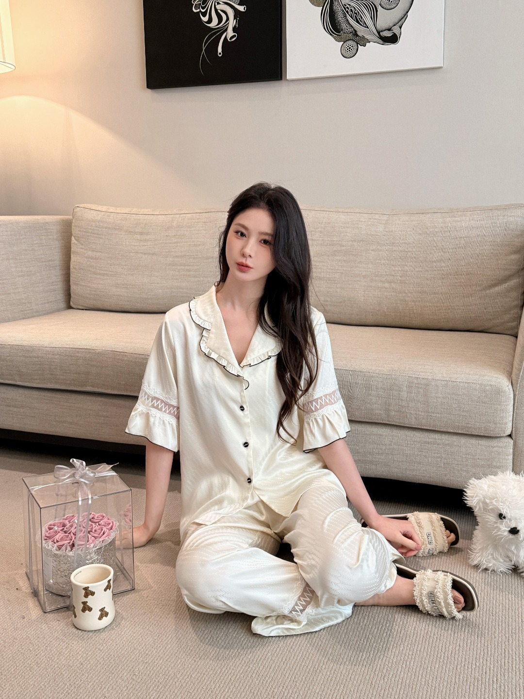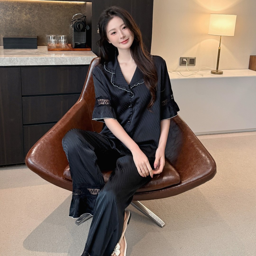 여름 새로운 스팟 아이스 실크 커플 잠옷 여성 하이 엔드 자카드 새틴 실크 블랙 남성 플러스 사이즈 홈웨어