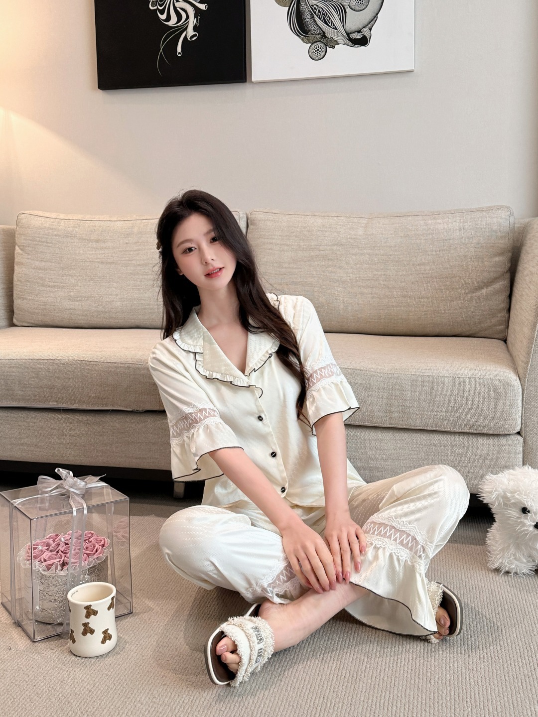 여름 새로운 스팟 아이스 실크 커플 잠옷 여성 하이 엔드 자카드 새틴 실크 블랙 남성 플러스 사이즈 홈웨어스토어 가기