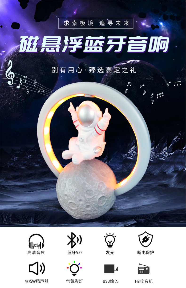 뜨거운 판매 국경 간 자기 부상 블루투스 스피커 우주 비행사 야간 조명 서브 우퍼 작은 스피커 뱀의 해 선물 연례 파티 선물