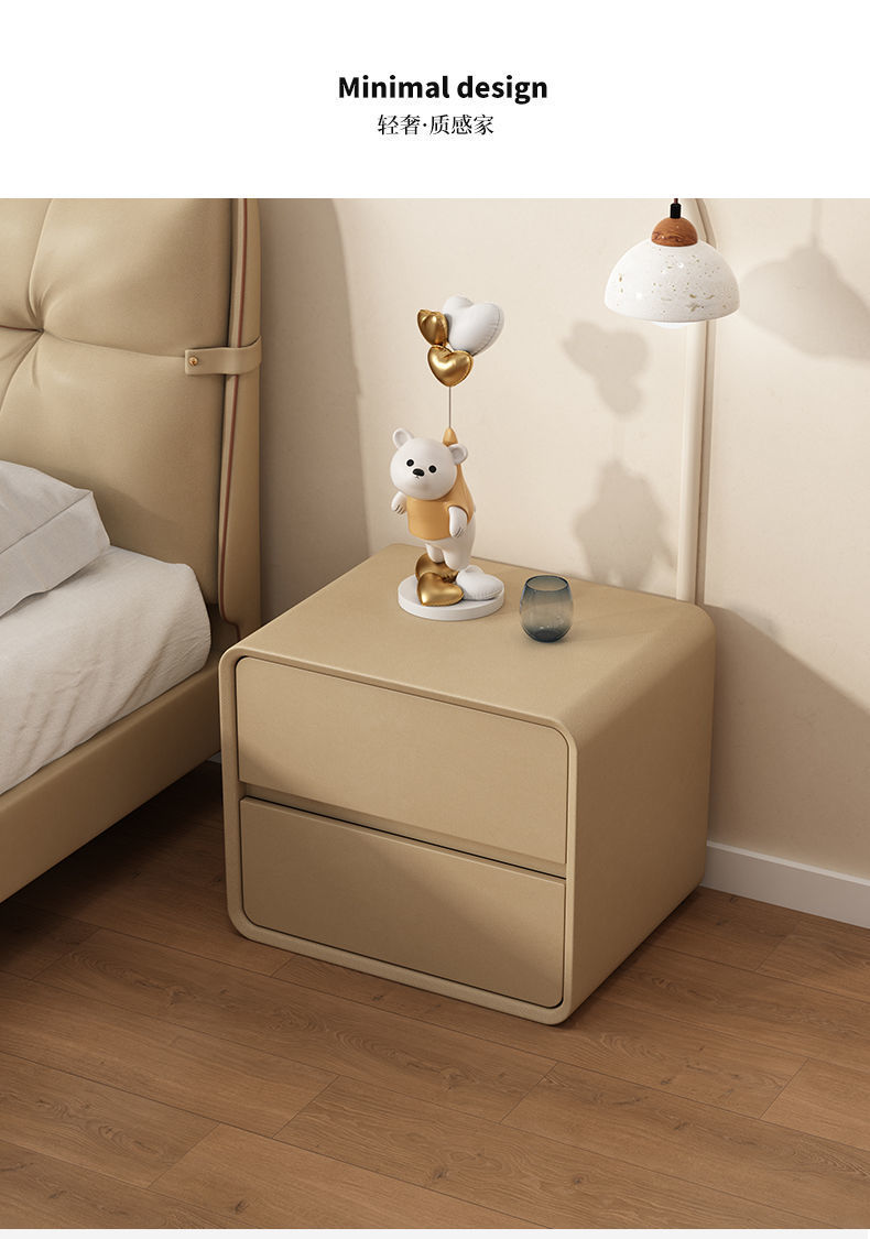 가죽 침대 테이블 간단한 현대 빛 고급 작은 단단한 나무 침대 옆 내각 인터넷 인기있는 Ins 스타일 간단한 침실 보관 캐비닛