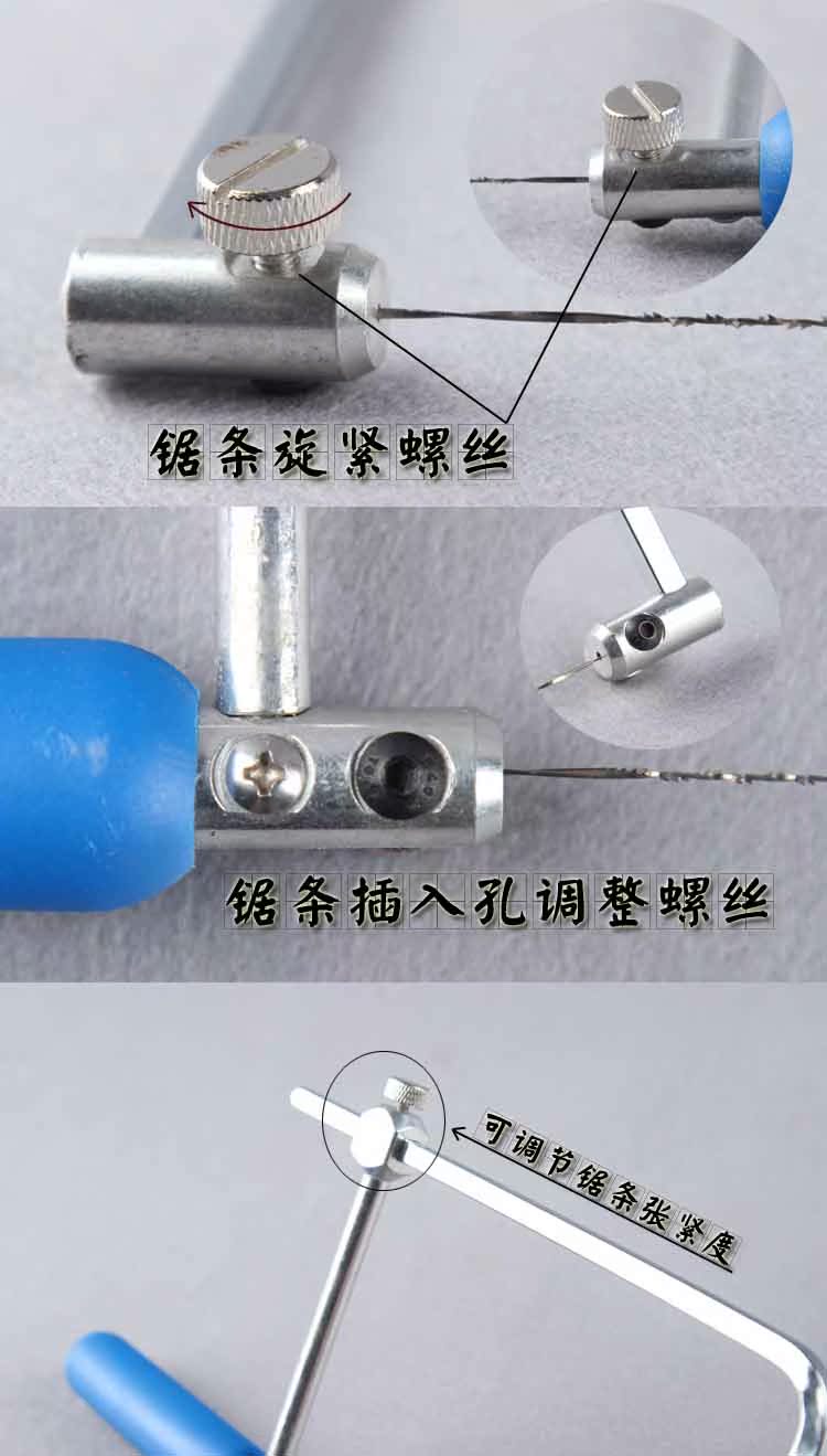 注意事项:安装时,锯条一定要绷紧,不然在锯切的时候容易拉扯断.