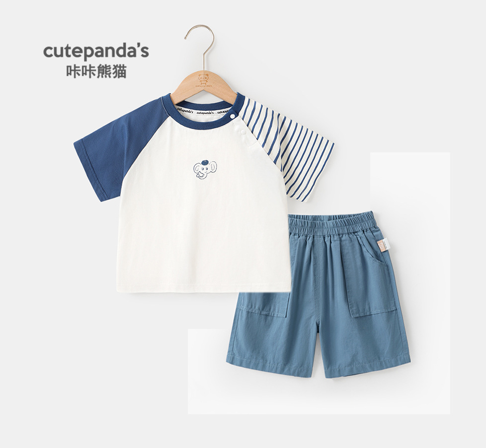 카카 팬더 보이즈 반팔 티셔츠 걸스 여름 착용 어린이 여름 캐주얼 반팔 반바지 세트 아기 아동복스토어 가기