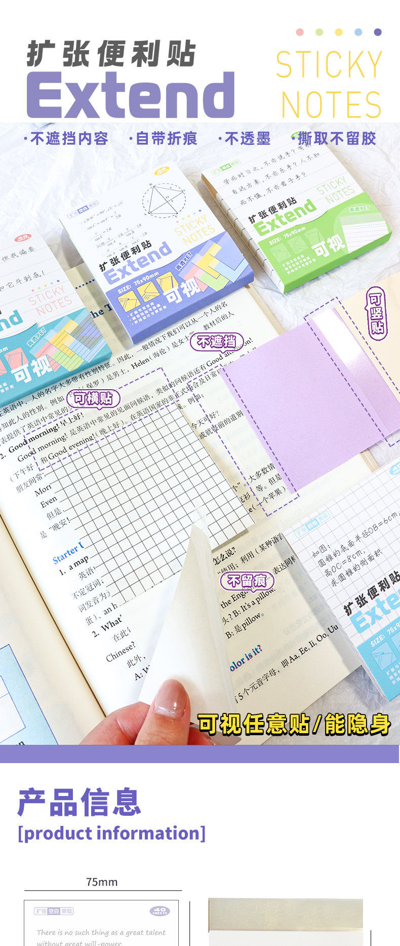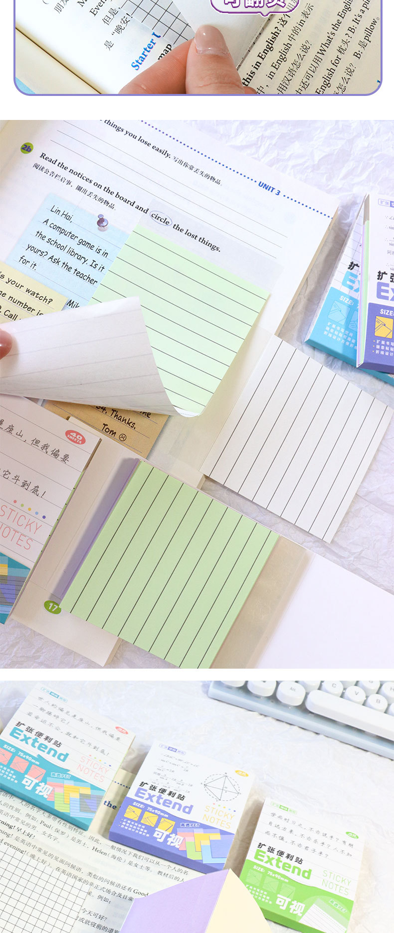 확장형 포스트잇 노트는 대학원 입시 학생들이 텍스트를 가리지 않고 포스트잇을 붙일 수 있도록 시각적으로 표현되어 있으며, 잘못된 문제 스티커를 학습할 수 있습니다.스토어 가기