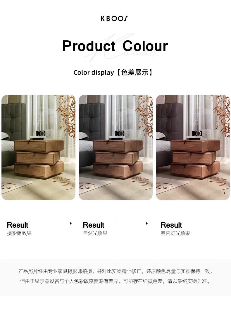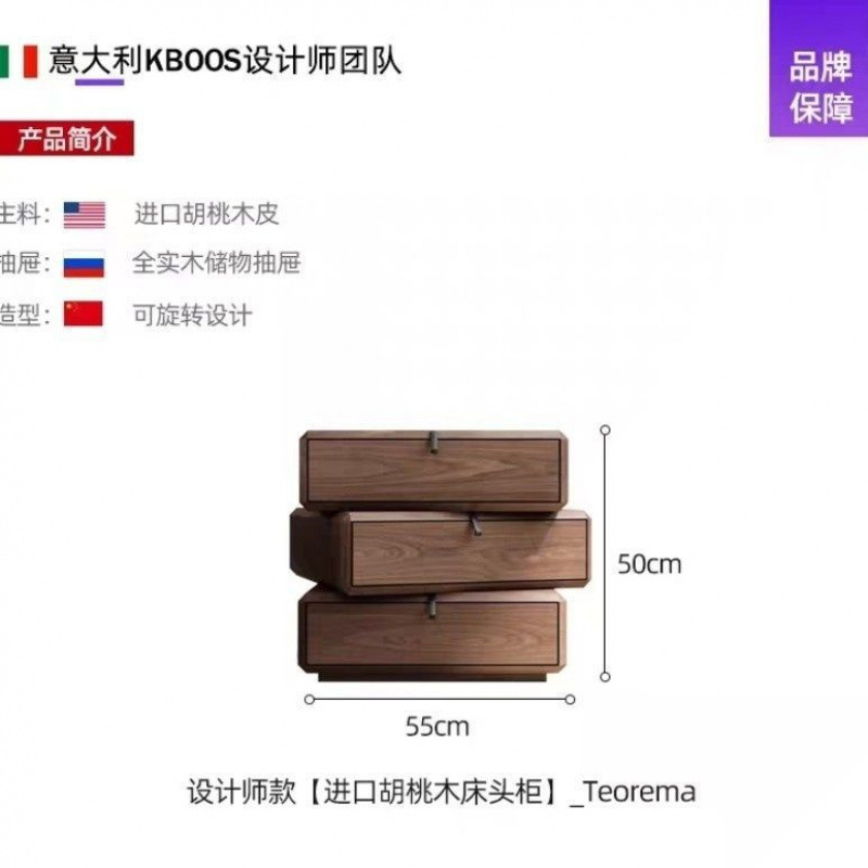 • 회전이 가능한 고급 침대협탁(원목 서랍 + 호두결 무늬목)