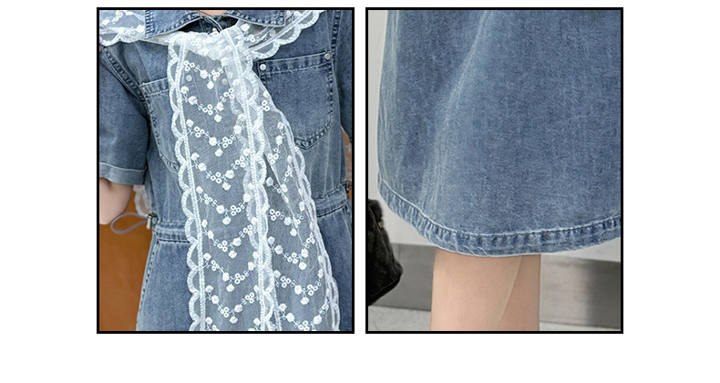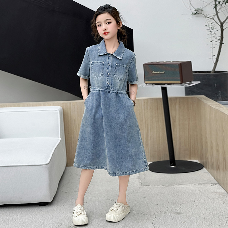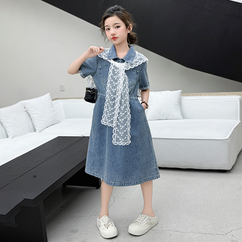 여자 여름 원피스 2025 새로운 중학교 소녀 우아한 캐주얼 착용 여자 목도리 데님 치마스토어 가기