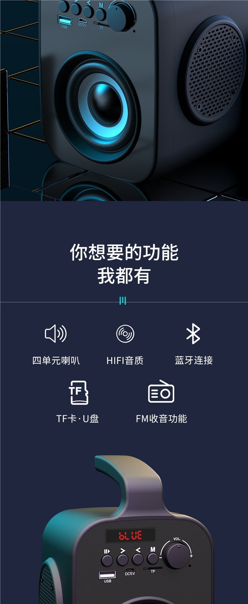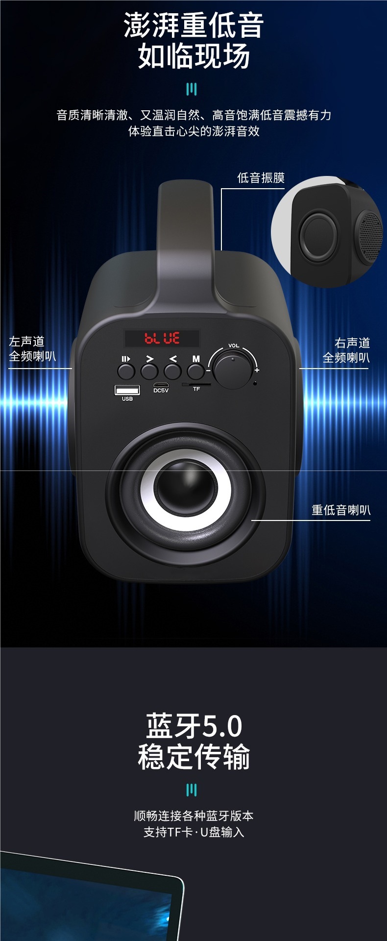 음성 방송 수납 블루투스 스피커 무선 오디오 홈 소형 휴대용 고출력 서브우퍼 스피커