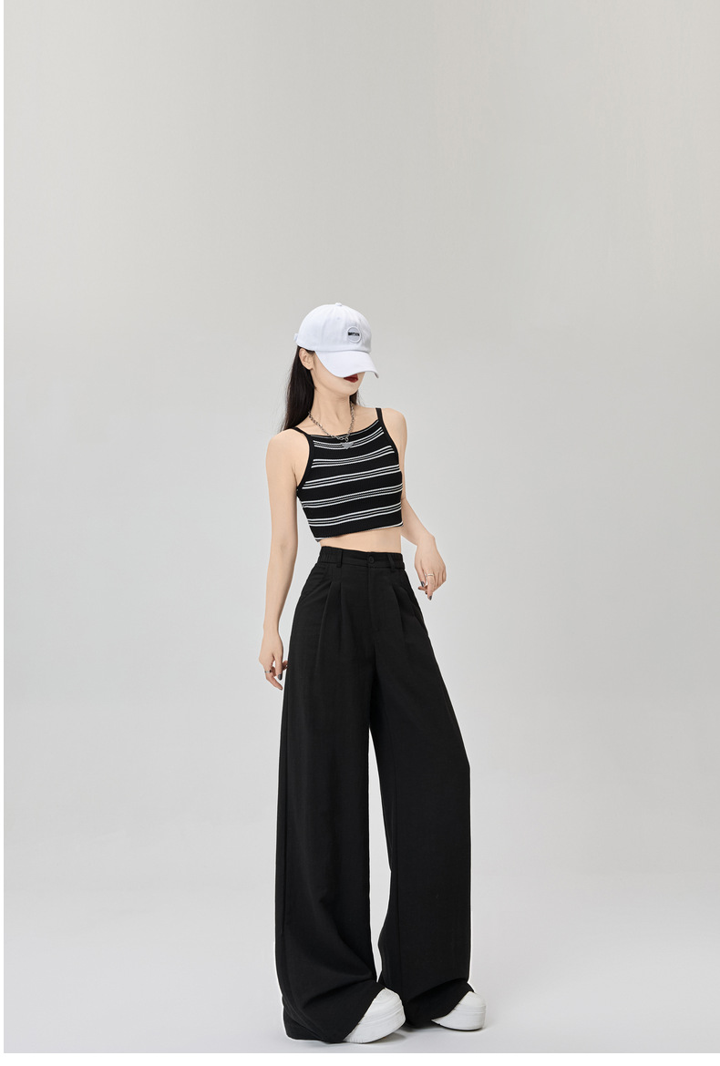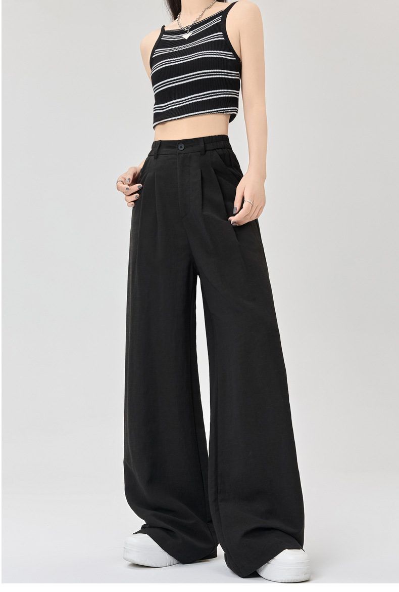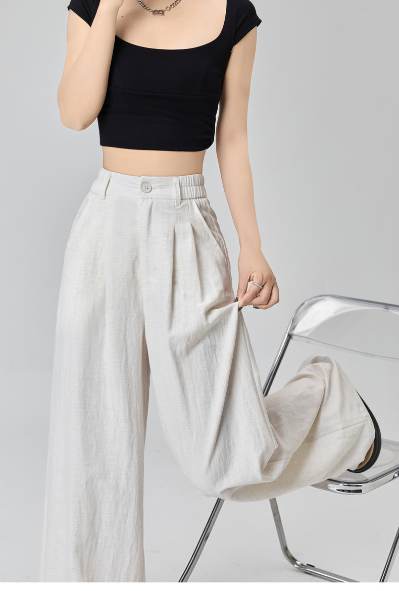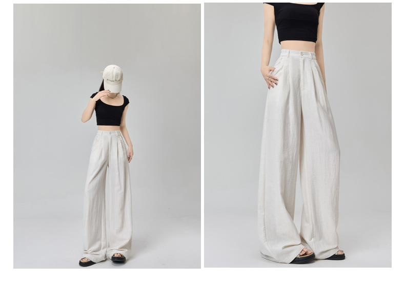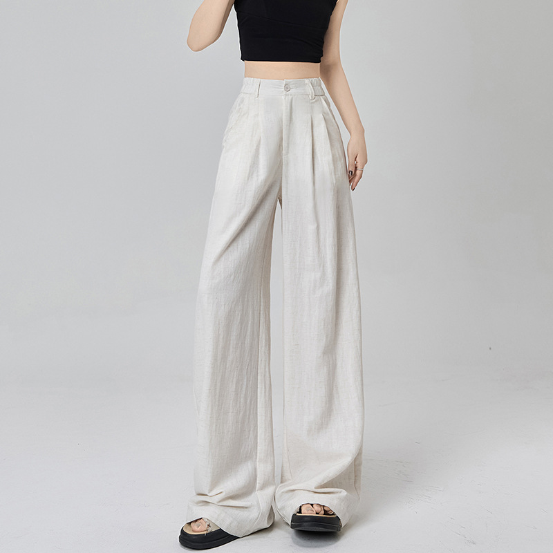 여름면 및 린넨 와이드 레그 팬츠 여성의 얇은 높은 허리 슬리밍 처짐 게으른 주름 얼음 실크 빠른 건조 바지